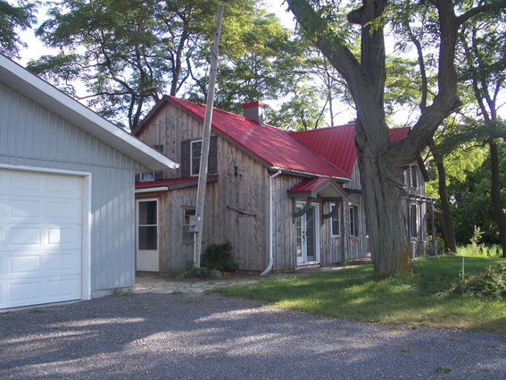 The eastern portion of our house (currently the office) is thought to be some 150 years old, and the central and western portions thought to have been added about 50 years later. Kitchen and dining functions occupied the centre, while the west was used as a wood shed (ground floor) and a chicken coop (second storey). The western third was fully incorporated as an interior space in 2004, when its then new owners renovated inside and out. The first photo shows the house c.1898, “on occasion of new drive shed” (demolished 2004) in the foreground, and if one squints, one can see some young locust trees that eventually come to their modern prominence.