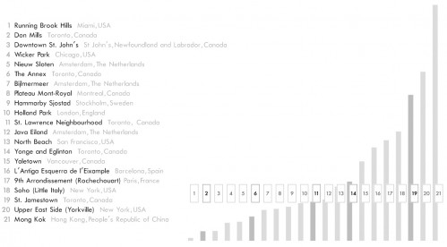 Continue reading the full post below for expanded versions of the neighbourhood and density studies shown at the COMMUNITY CENTRED exhibition.