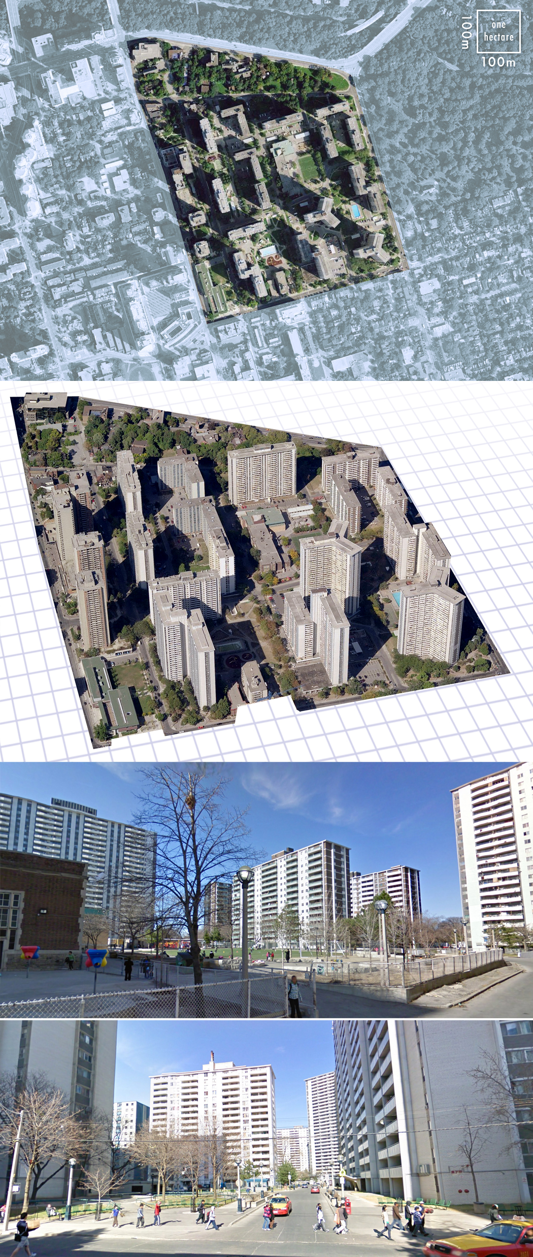We often talk about density in terms of numerical ratios, or other quantitative abstractions. Our intention here is to try and map the spatial experience of specific densities to their numerical signifiers, and then relate these examples directly to similar conditions in Toronto.
