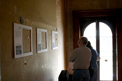 This year for Doors Open Hamilton, we took the opportunity to share with the public some of our most interesting findings. Viewing frames were placed on the walls where visible remnants of the decorative schemes could be observed, while display panels provided information on the process of studying, investigating and understanding these finishes.