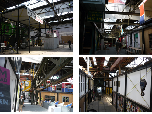 NDSM, Amsterdam. 1999. Within this former shipyard to the north of the city, independent steel structures were built inside of the long warehouse building, and these empty voids were then leased to artists and designers who were able to construct their own studios.