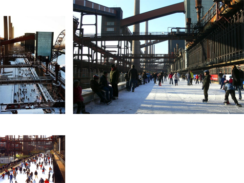 Winter skating along the former shipping channel at Zeche Zollverein in Essen, Germany.