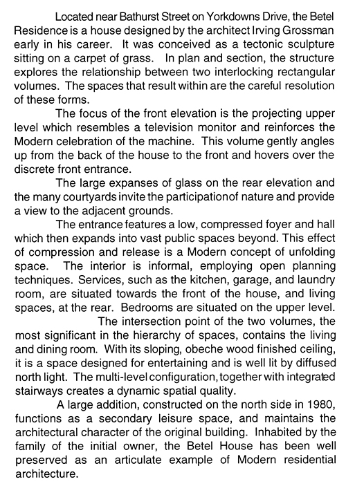 Project description from the original 1997 version of North York’s Modernist Architecture.