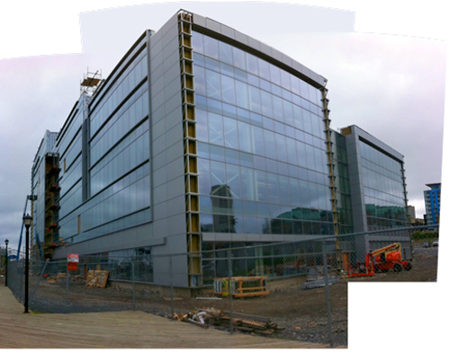 Daniel Wojcik gaving a quick tour of the Lydon Lynch office atop the new Halifax Farmer’s Market building, with a panoramic view of the Halifax harbour.