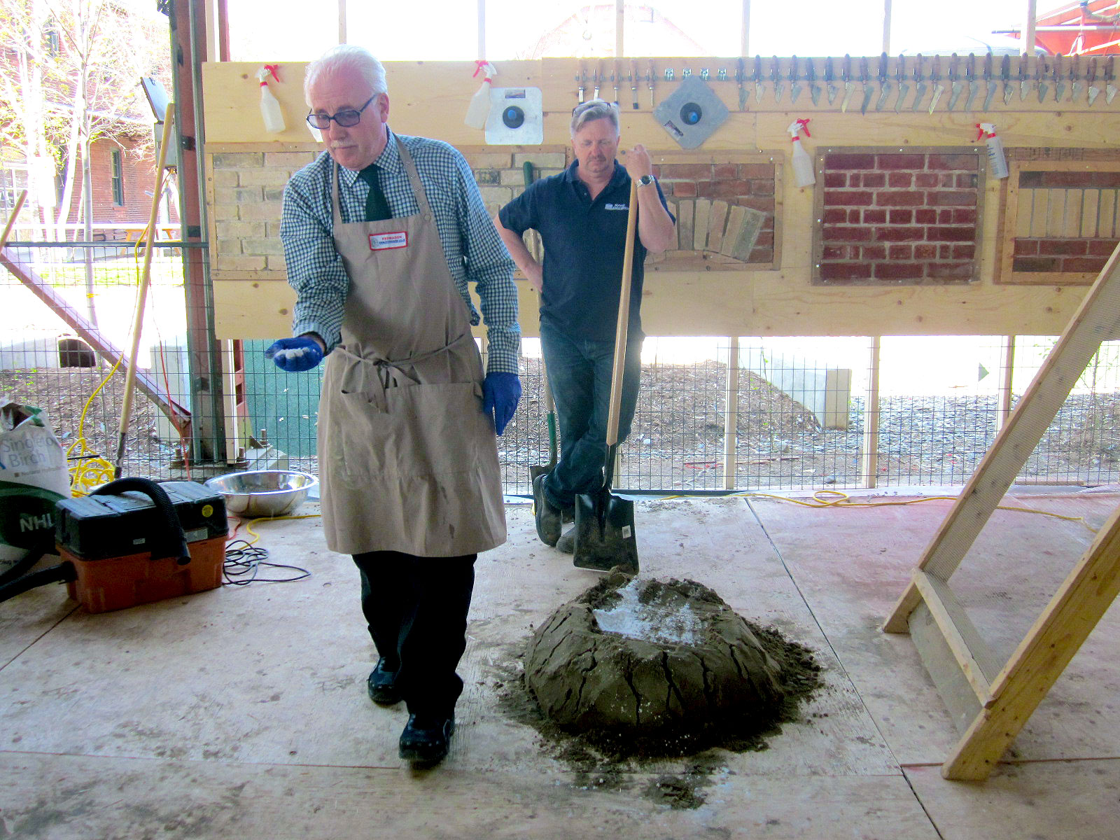 Dr. Lynch – or “Dr. Brick” as he is known – extended his teachings to a hands-on demonstration of lime mortar mixing on the Brickworks site. After creating a mortar mix using a proper ratio of lime, sand, and water, participants were invited to apply their new knowledge first-hand by practicing the delicate art of repointing.
