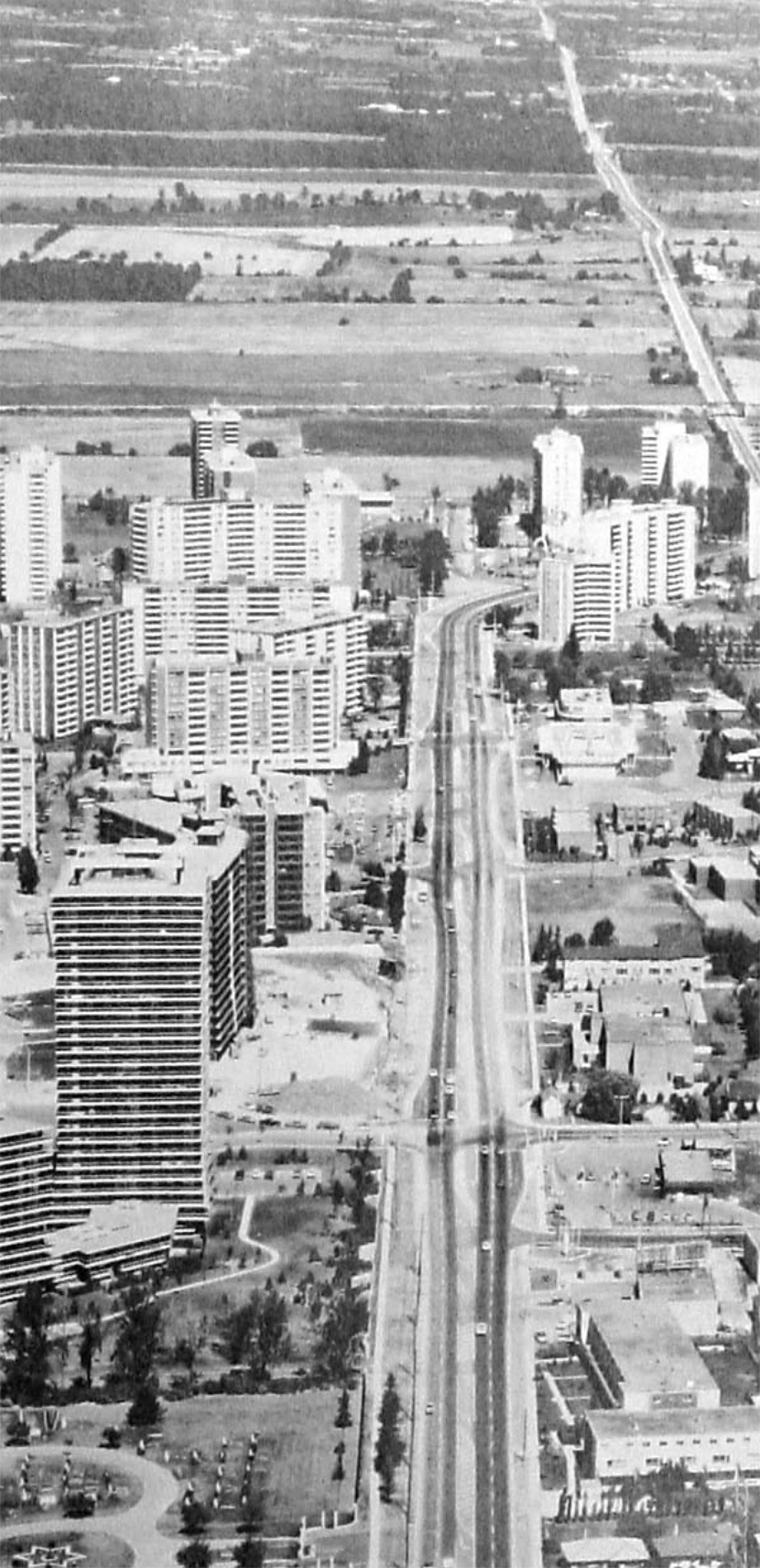 The reference to “inefficiency” and “incredible opportunity” does not refer to all the towers in the city: Tower Renewal focuses specifically on the legacy of a significant residential building boom that occurred in Toronto in the immediate post-war period. This boom continued for over thirty-five years until the government incentives that had assisted it were eliminated. The construction of these apartment towers was part of a deliberate strategy to modernize Canadian cities, and this strategy was lead by émigré planners and architects who had witnessed remarkable renewal efforts in Europe. Where the professional planning community in Toronto had been quite small before the war, it now attracted many new members who brought with them modern, innovative planning ideas. The tower-in-the-park idea was a very simple formula: “taller buildings spaced further apart and with larger percentages of landscape areas can result in a better residential standard, even with a higher density” (Faludi 1963, 3).