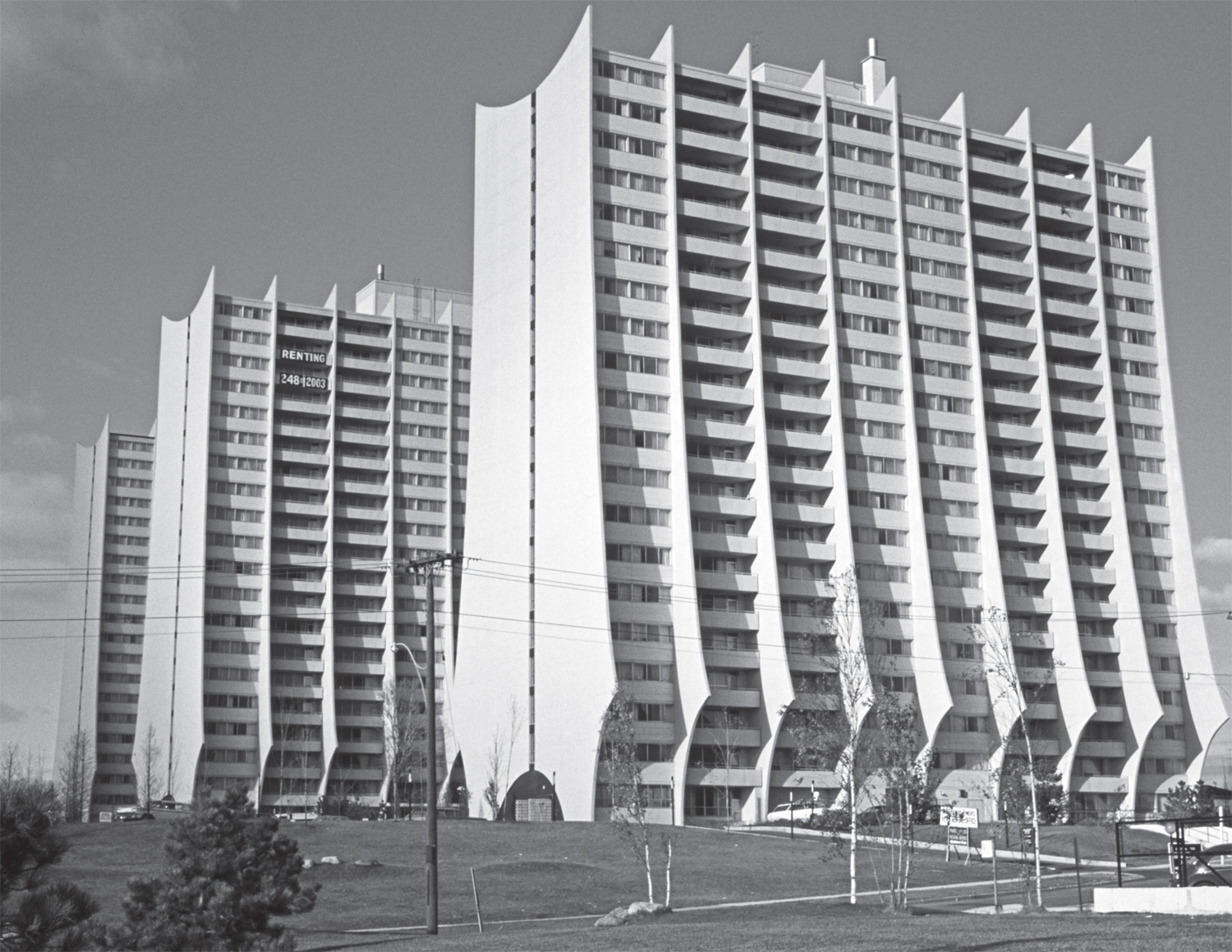 Consider the issues of prejudice, bias, and stigma currently felt about many of these apartment towers, as is felt internationally and generally about many of the buildings of the post-war period, particularly if they have exposed concrete structures. Juan Pablo Bonta, in his 1970s Architecture and its Interpretation, outlined how the cultural significance of architecture tends to progress: First, a period of blindness, where buildings are simply ignored or given little or no consideration. Second, a pre-canonic period where discussion occurs, pro and con, and where various and sometimes competing views are put forward regarding the cultural value of a particular architecture. And, finally, this is followed by the creation of a full canonic interpretation where a consensus can be found on the merits of the building by experts in the field. Currently a consensus on a canonic interpretation can easily be found for many buildings in North America, if they are about a century old. The traditional heritage evaluation process is simply a codification of that interpretation. But for buildings of the post-war period, with some exceptions, it remains the rule that we are still in Bonta’s periods of blindness, or pre-canonic discussion at best.
