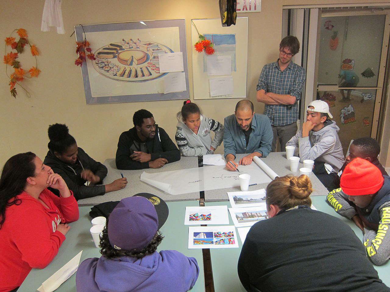 Not only was it a dark and rainy night, it was the Toronto Raptors’ first game of the season; yet the youth of Erin Mills Youth Centre still came out to the second community sport court design workshop in impressive numbers. Despite having to miss the first half of the game, these engaged and passionate young adults came through for their community and spent two hours with ERA Architects, MLSE, and City of Mississauga representatives to collaborate and produce outstanding ideas for the future Ridgeway Community Court multi-use sports court.