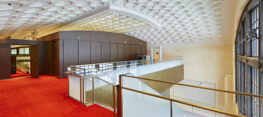 The rehabilitation project aimed to reveal the original character and historical elements of the building that had been concealed during modifications when Union Station became the Government Conference Centre in the 1960s. The theatrical character of the interior procession, the axial progression of spaces, the dramatic use of natural light, and the rich palette of materials were re-established and, in some cases, uncovered, while meeting the project’s functional and technical requirements for the Senate of Canada. Previous insertions in the significant interior spaces, such as the General Waiting Room and Concourse spaces, that obscured the heritage character of the building were removed. Interior elements, such as imitation travertine, marble and woodwork, were all repaired and refinished.