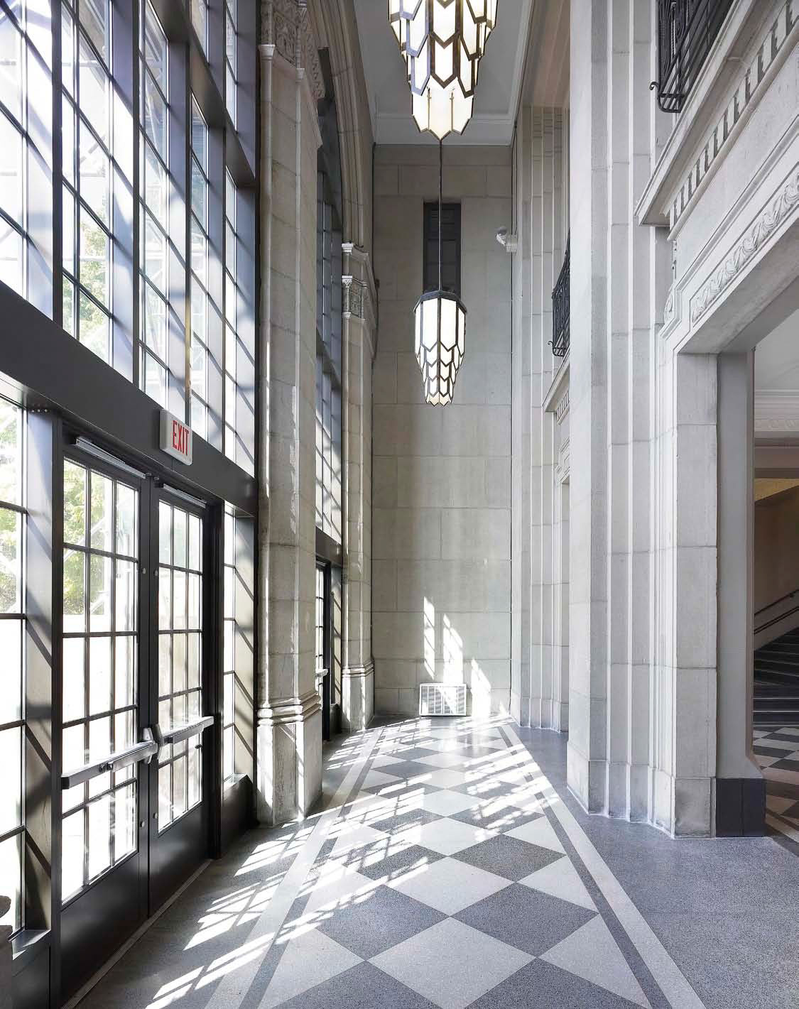 Le nouveau projet concernait la réhabilitation du bâtiment pour le transformer en centre de conférences, en y intégrant une salle de bal de 45 000 pieds carrés, 20 salles de conférences polyvalentes ainsi que des espaces connexes préréception et des espaces auxiliaires. À l’intérieur, les travaux prévoyaient l’aménagement du rez-de-chaussée similaire à la configuration originale, mais avec de nouveaux espaces fonctionnels. Le design était axé sur la restauration des qualités et des caractéristiques du bâtiment original de style Art déco en fonction du nouveau programme, ainsi que sur l’amélioration de l’enveloppe de l’immeuble et l’obtention de la certification LEED Argent.