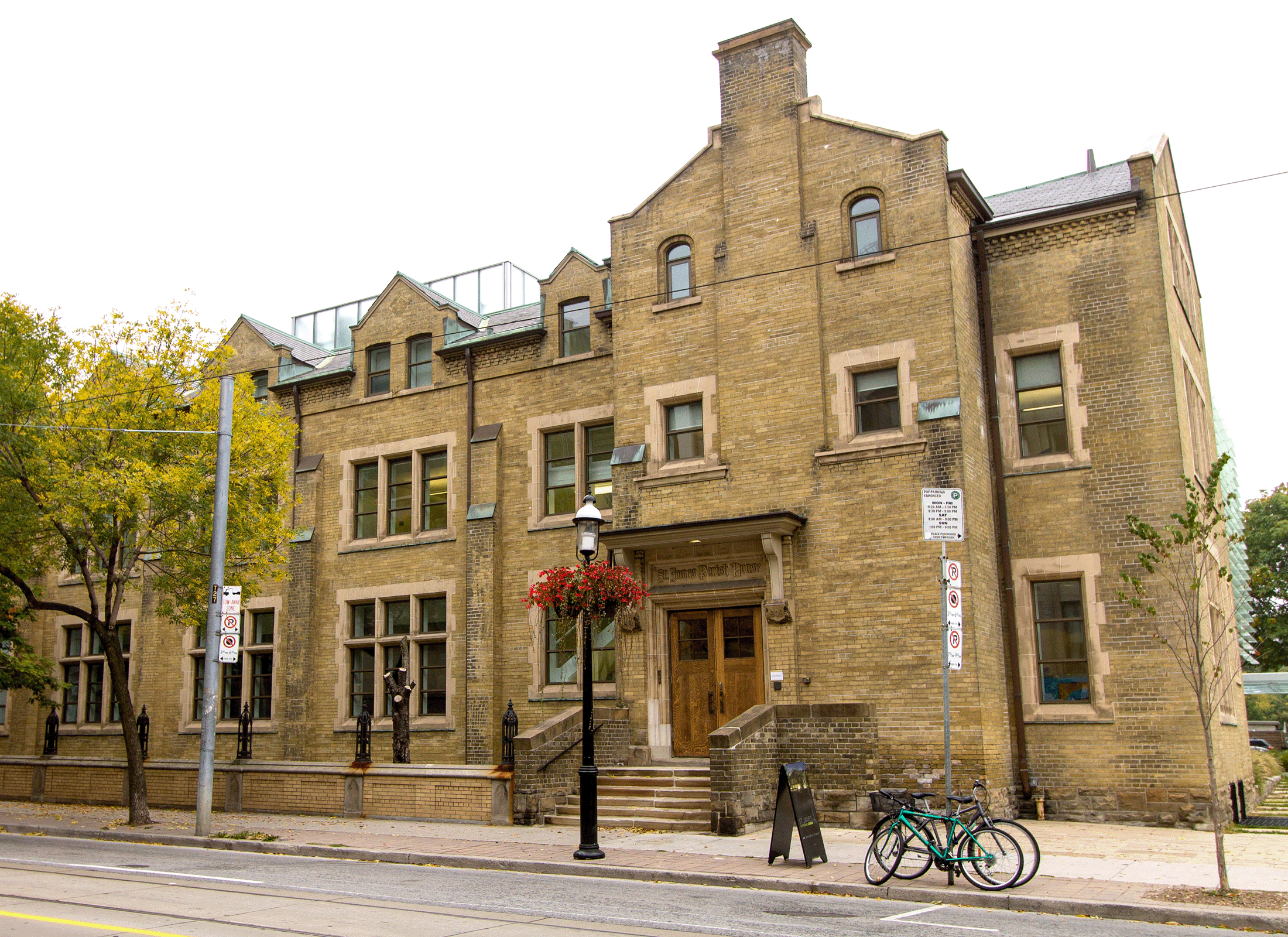 La maison paroissiale St-James, selon son appellation d’origine, est un élément important du campus de la cathédrale St-James, une des principales propriétés historiques du vieux Toronto. La maison paroissiale, achevée en 1909, a été conçue par les architectes torontois de renom Darling and Pearson et elle est un excellent exemple de style néo-gothique. Le centre diocésain contigu, du côté Est, a été ajouté en 1958 et est l’œuvre des architectes Mathers and Haldenby.