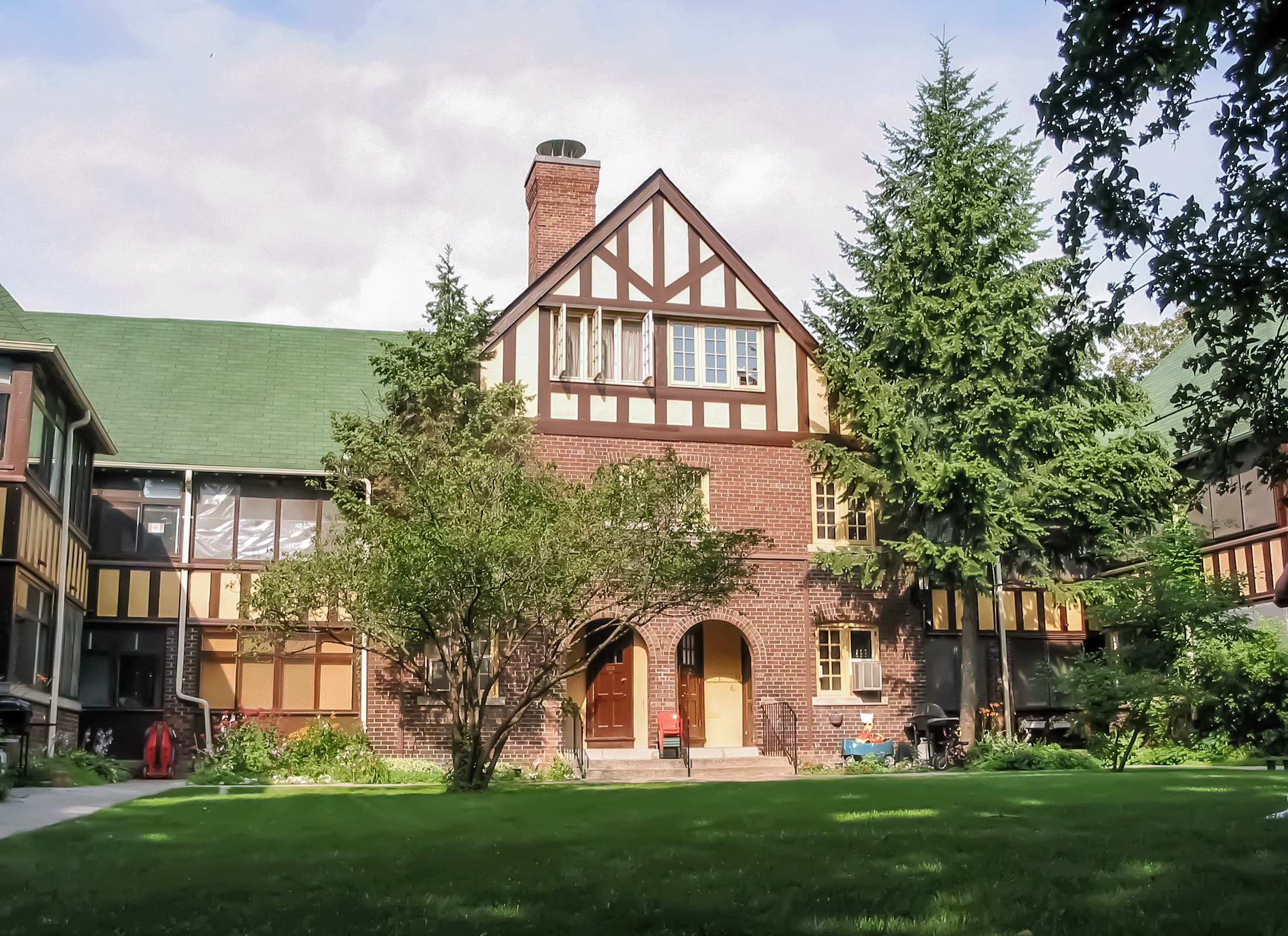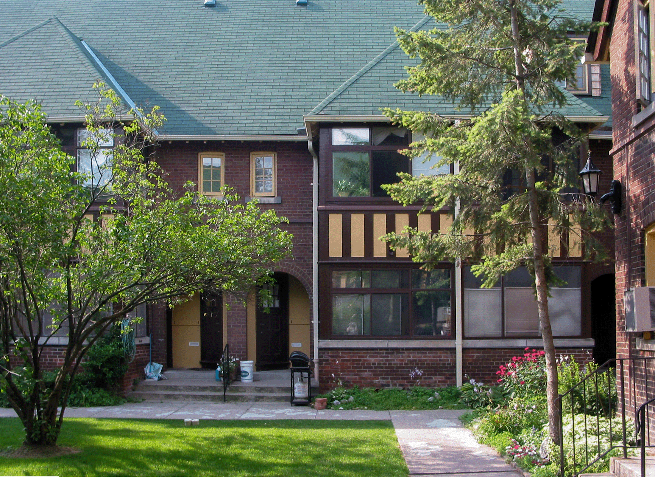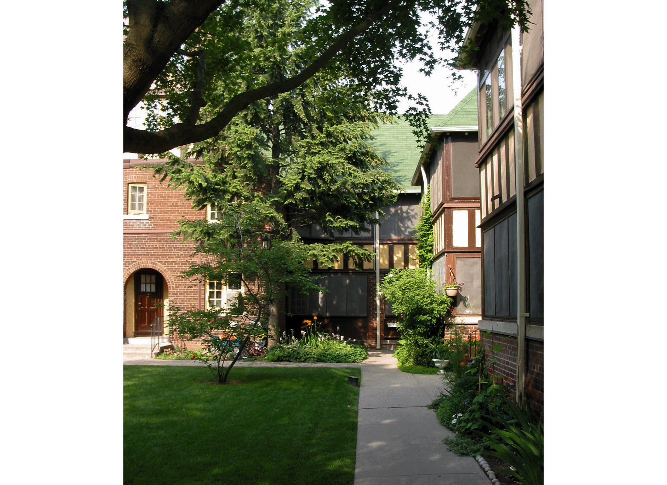 La coopérative d’habitation de Spruce Court a été fondée en 1913 et l’ensemble a été conçu par Eden Smith, architecte de renom de Toronto. Première coopérative d’habitation de la ville de Toronto, Spruce Court est remarquable par son échelle humaine et son aménagement simple, quoique riche en séquences d’espaces et en vues entre les bâtiments. De style Arts and Crafts, les bâtiments comportent des éléments de détails vernaculaires, mais élégants, et les intérieurs confortables sont bien conçus.