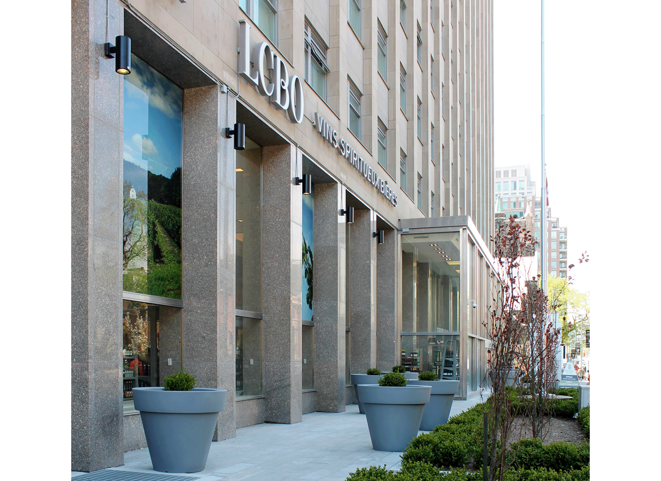 Le projet inclut la réhabilitation du hall de deux étages afin d’accueillir de nouveaux commerces de détail tandis que les étages supérieurs de l’immeuble ont été transformés en condominiums résidentiels.