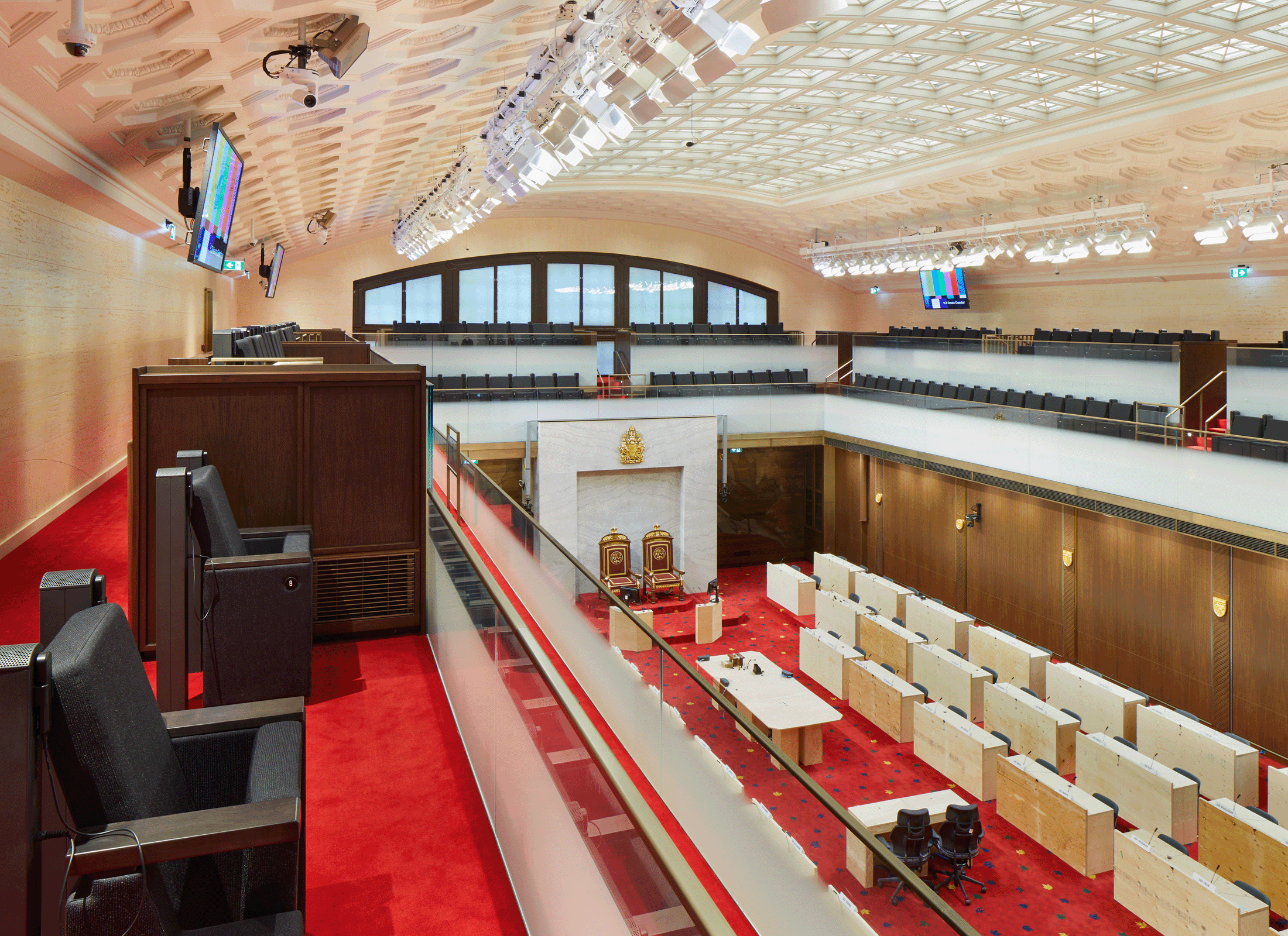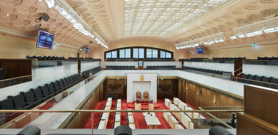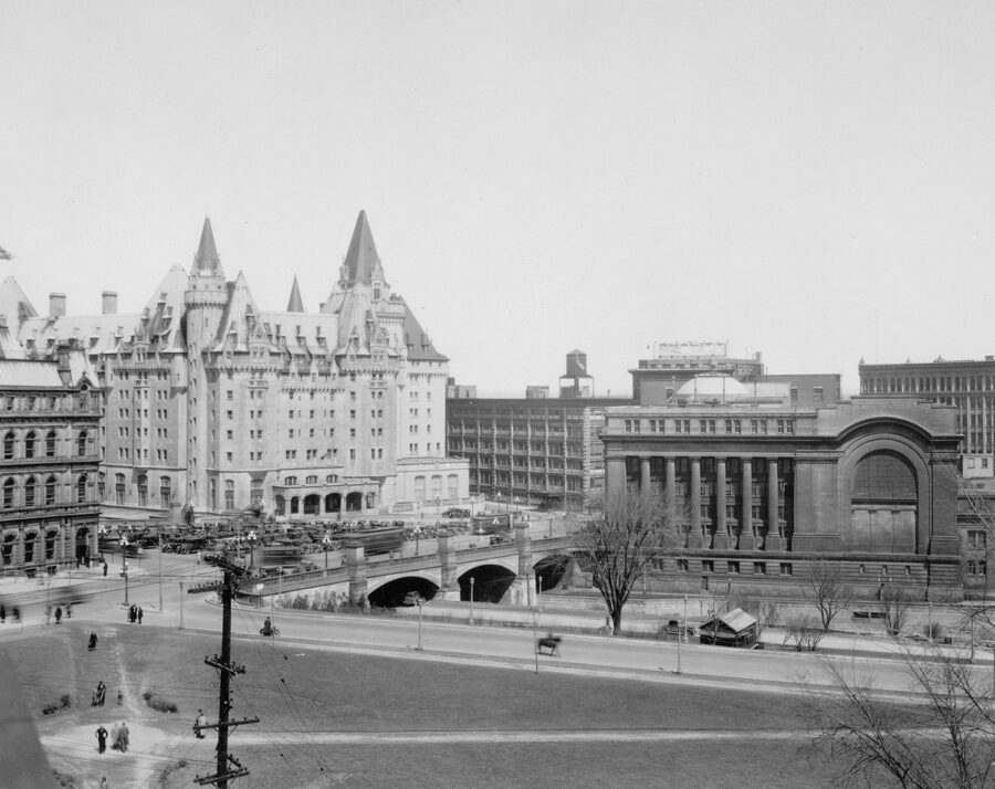 L’édifice du Sénat du Canada, initialement le terminal ferroviaire de la gare Union d’Ottawa, a été construit en 1912 et a subi d’importantes transformations au cours des 100 dernières années. Conçu au début par le cabinet d’architectes montréalais Ross and MacFarlane, le bâtiment est un excellent exemple de gare ferroviaire de style beaux-arts en vogue au début du 20e siècle et présente de nombreuses similitudes avec la célèbre Pennsylvania Station de New York. En 1966, avec le déclin du transport ferroviaire de passagers, le bâtiment a échappé de peu à la démolition et a été converti en Centre de conférences du gouvernement (CCG). Connu aujourd’hui sous le nom d’édifice du Sénat du Canada, il a été rénové pour accueillir temporairement le Sénat du Canada pendant les travaux de réhabilitation de l’édifice du Centre.
