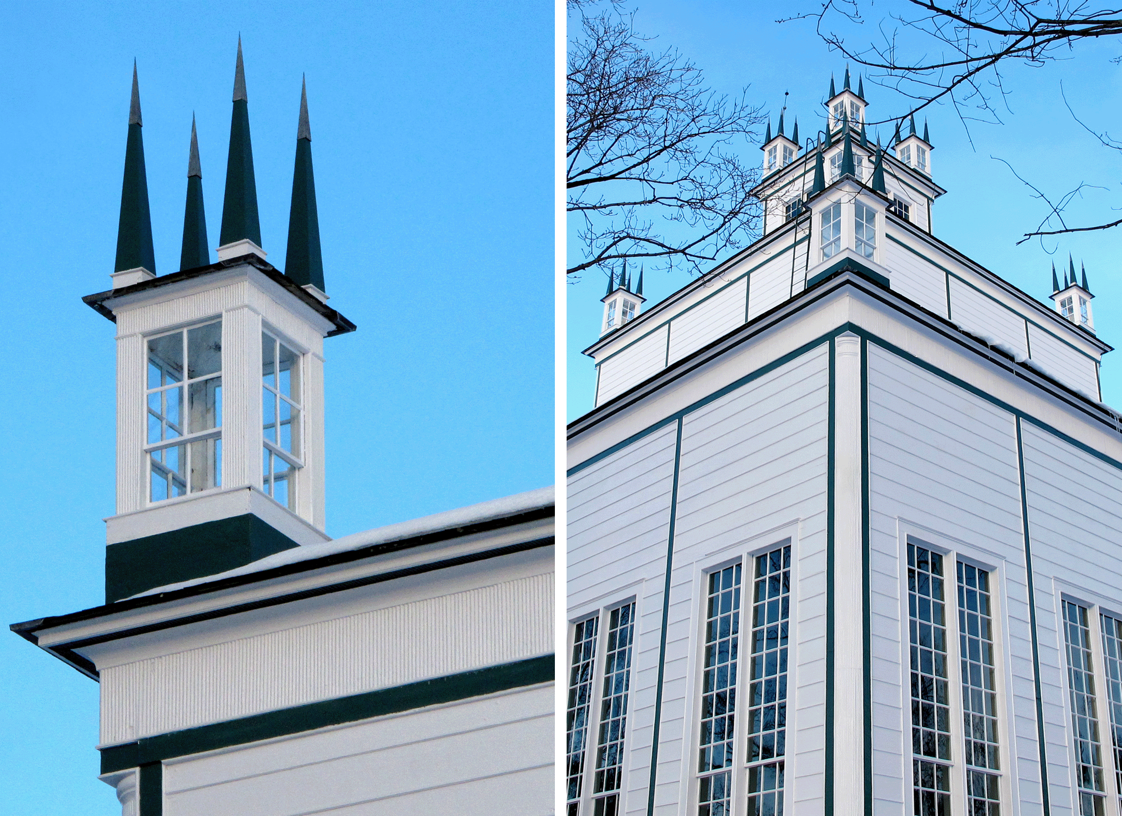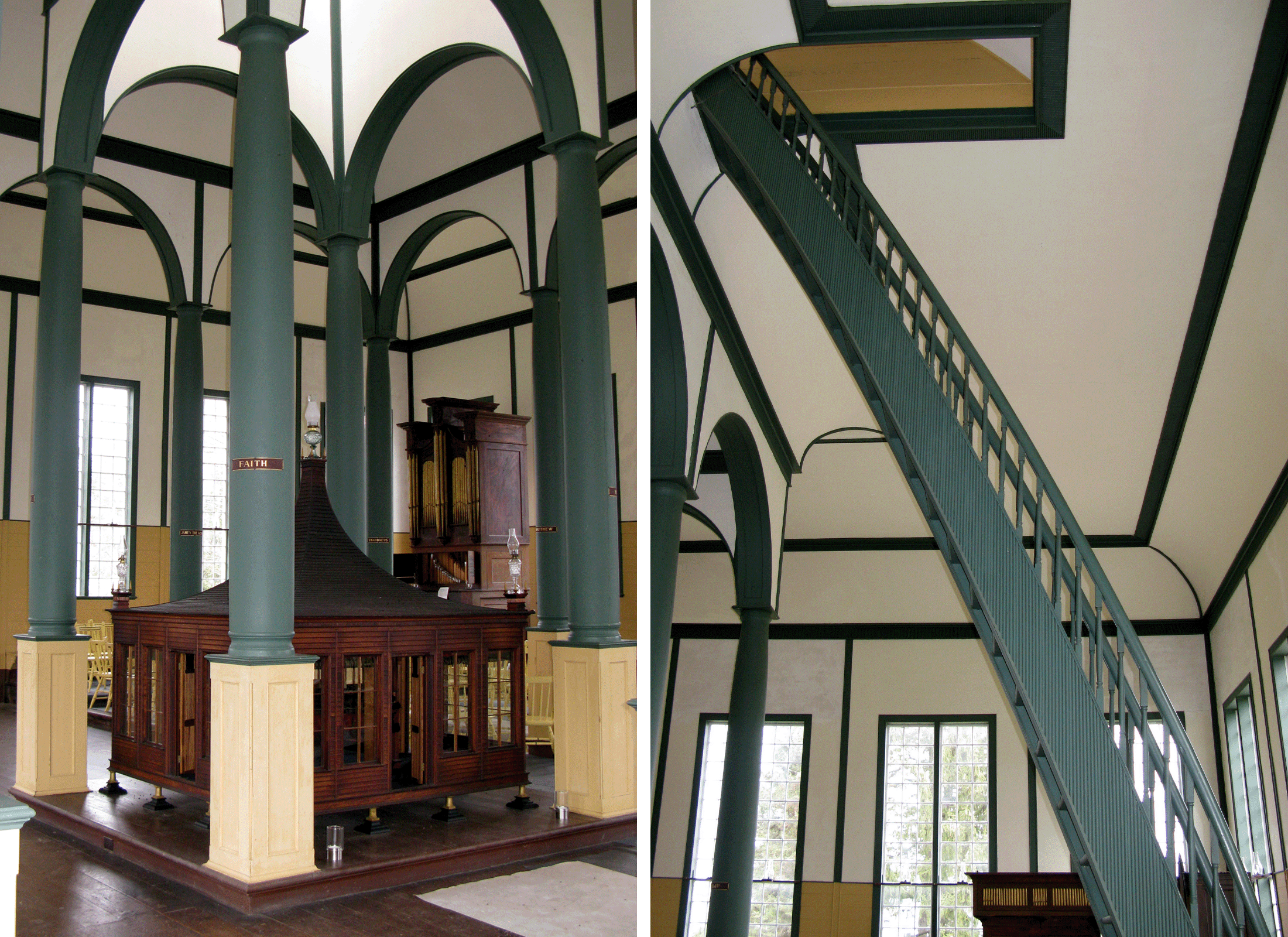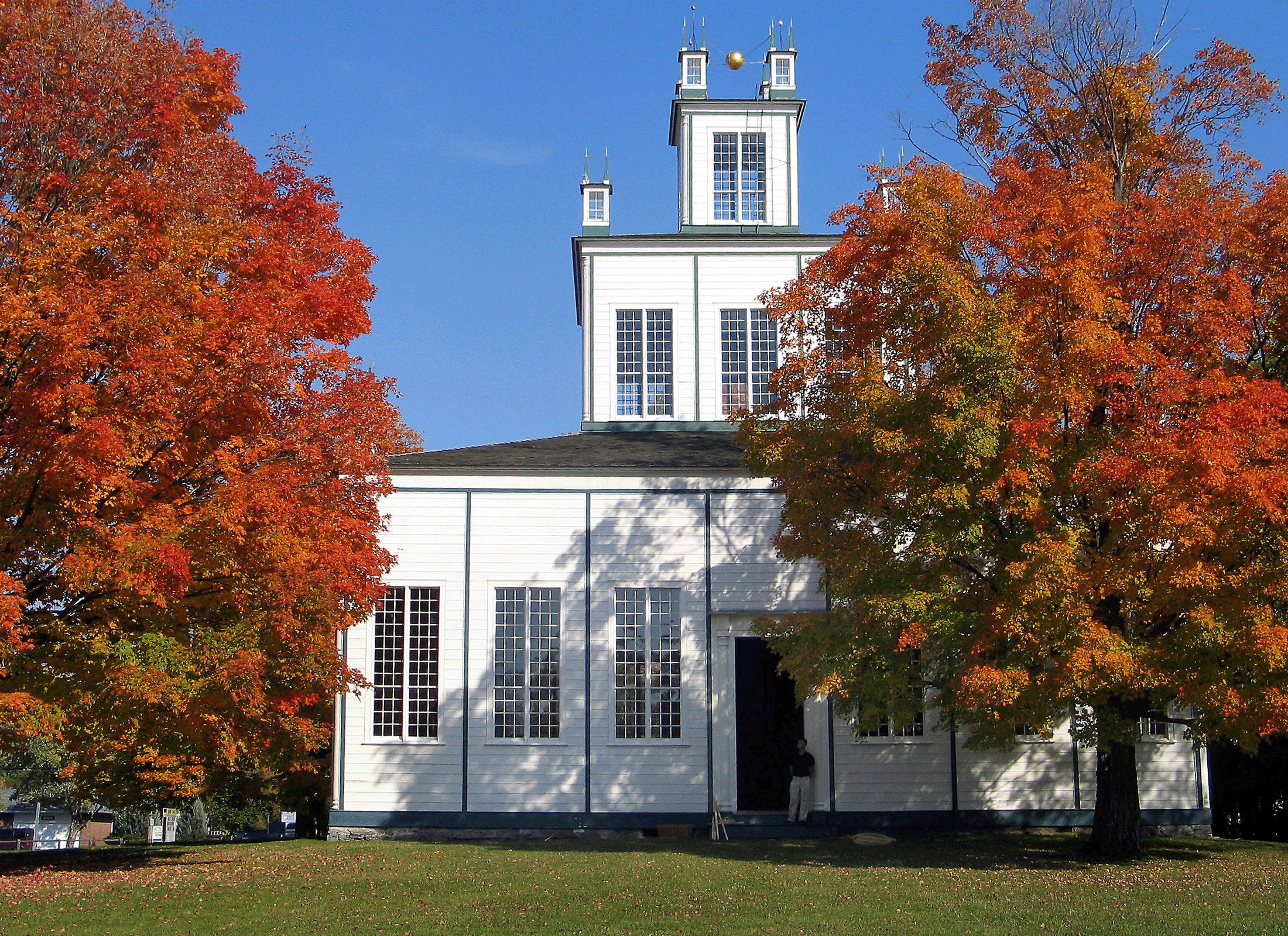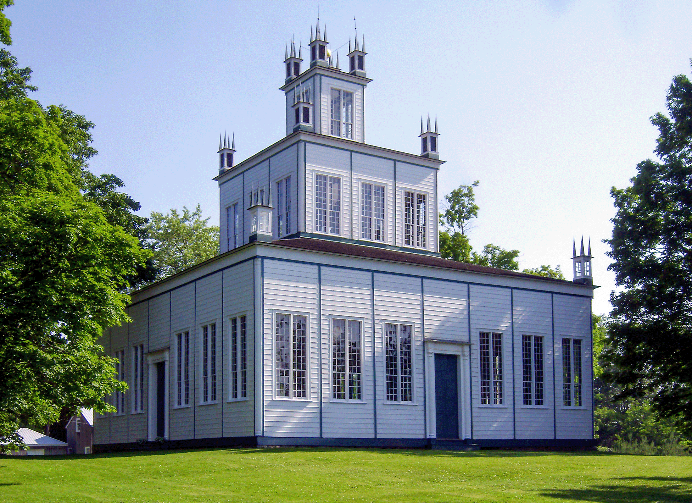 Le temple de Sharon est un chef-d’œuvre de la construction en bois. Il a été achevé en 1832 par les Enfants de la Paix, une secte dissidente des Quakers qui s’engageait pour la démocratie, l’égalitarisme et la justice sociale. Le plan symétrique du bâtiment était destiné à communiquer un esprit d’égalité entre ses murs, et l’espace n’était utilisé que lors d’occasions spéciales pour des célébrations auxquelles toute la communauté était invitée.