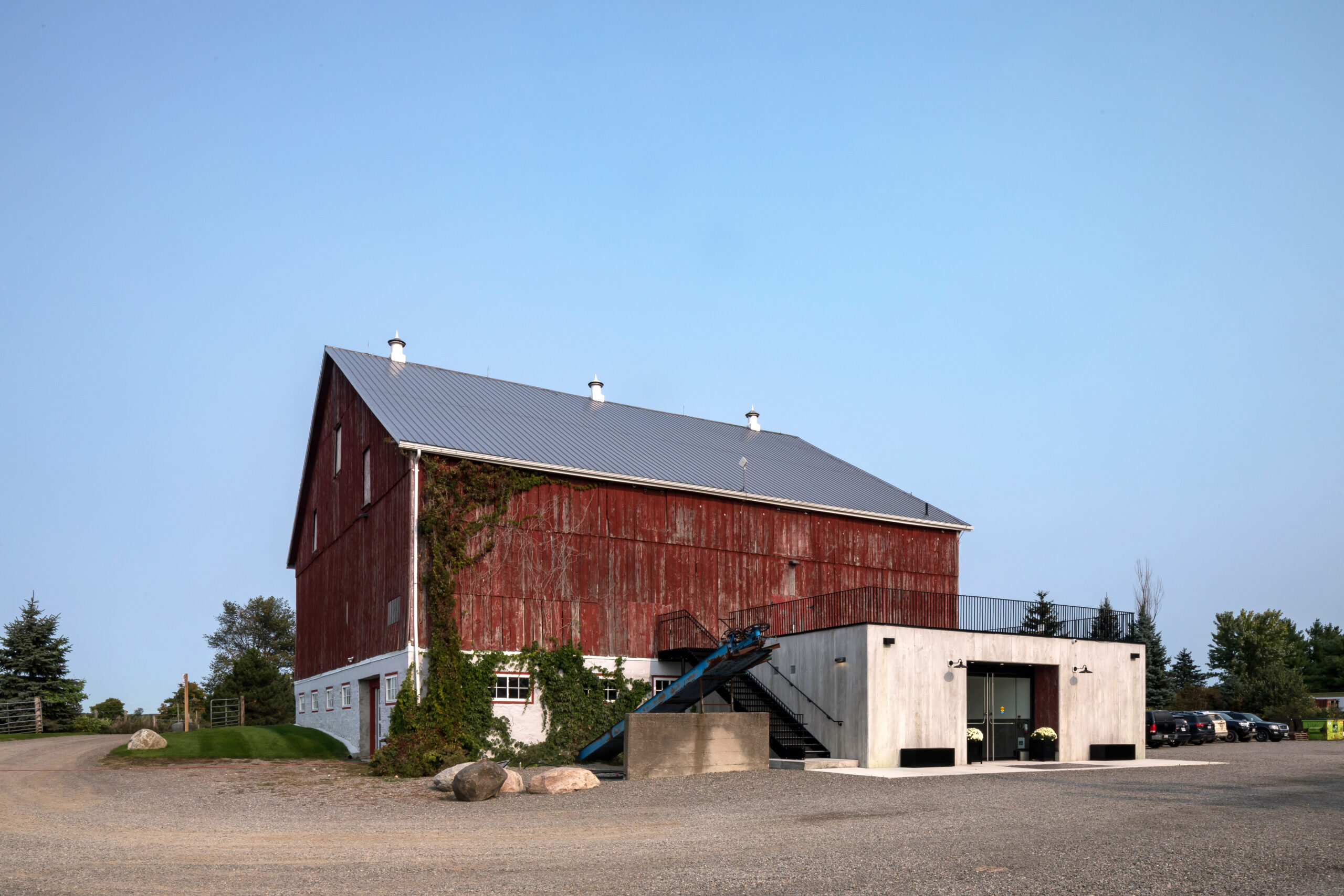 The barn has now been updated with the addition of two new amenity buildings, and the extensive renovation of the basement level, transforming Cambium Farm from a seasonal event space to one with capacity for year-round use.