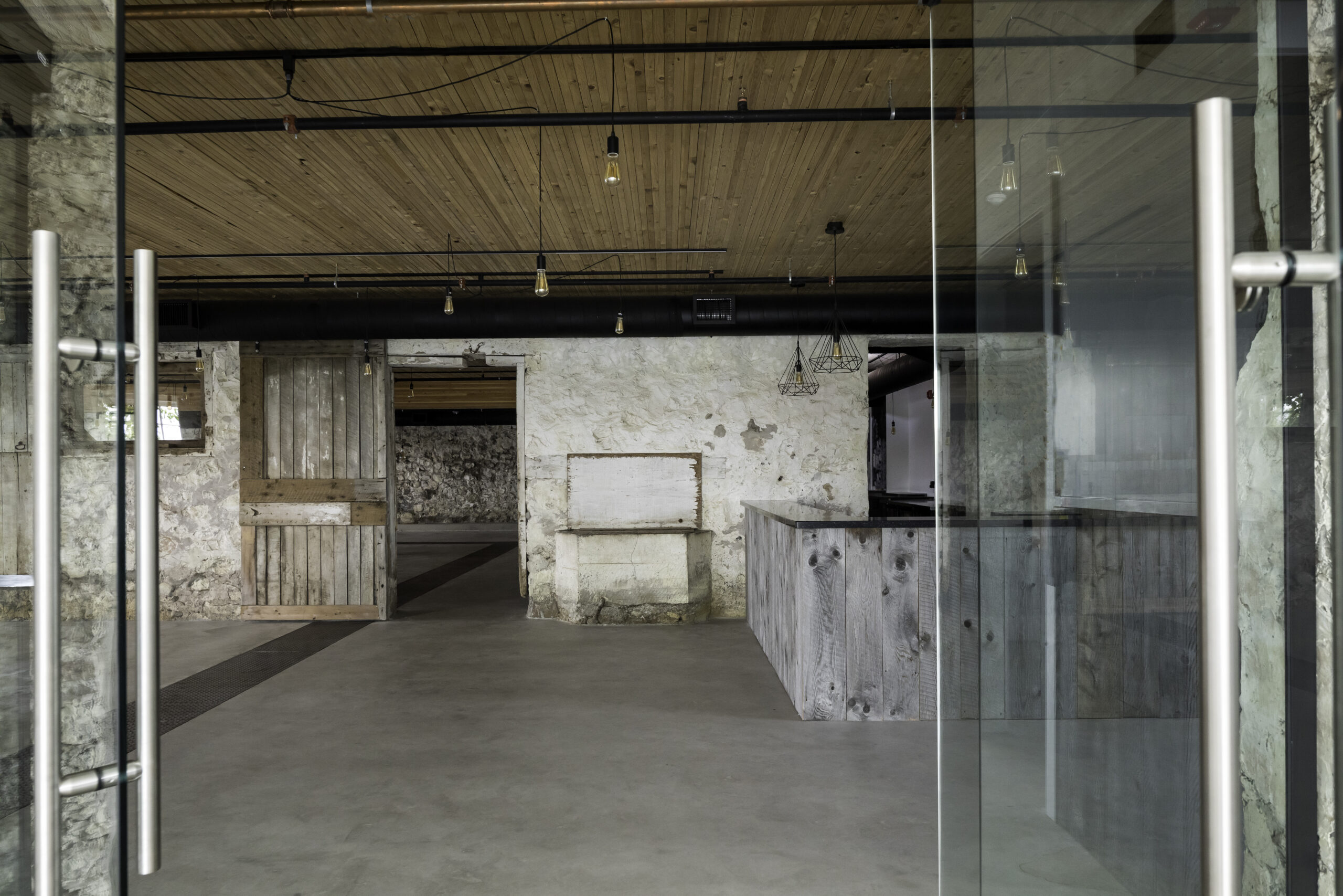 Taking cues from the existing farm vernacular, both additions are built of board-formed concrete. This allows all new construction to be compatible with the surrounding concrete outbuildings, while referencing the adjacent barn’s vertical exterior siding. Salvaged wood siding, floorboards, and timbers were used in a modern application on the interior, ensure the inside of the building’s new spaces compliments the barn’s exposed interior structure.