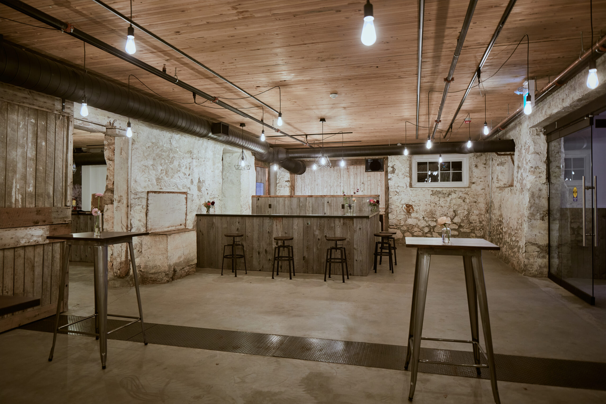 Converting the under-utilized basement into an intimate second venue, now named The Byre, allowed the team an opportunity to explore modern structural applications of timber. The use of glulam posts and an NLT (nail-laminated timber) ceiling provided the required structural support while interpreting the historic timber systems. The south addition creates a formal entry, vestibule and cloakroom for The Byre, while the east addition provides much needed amenity space — including washrooms and a catering kitchen.