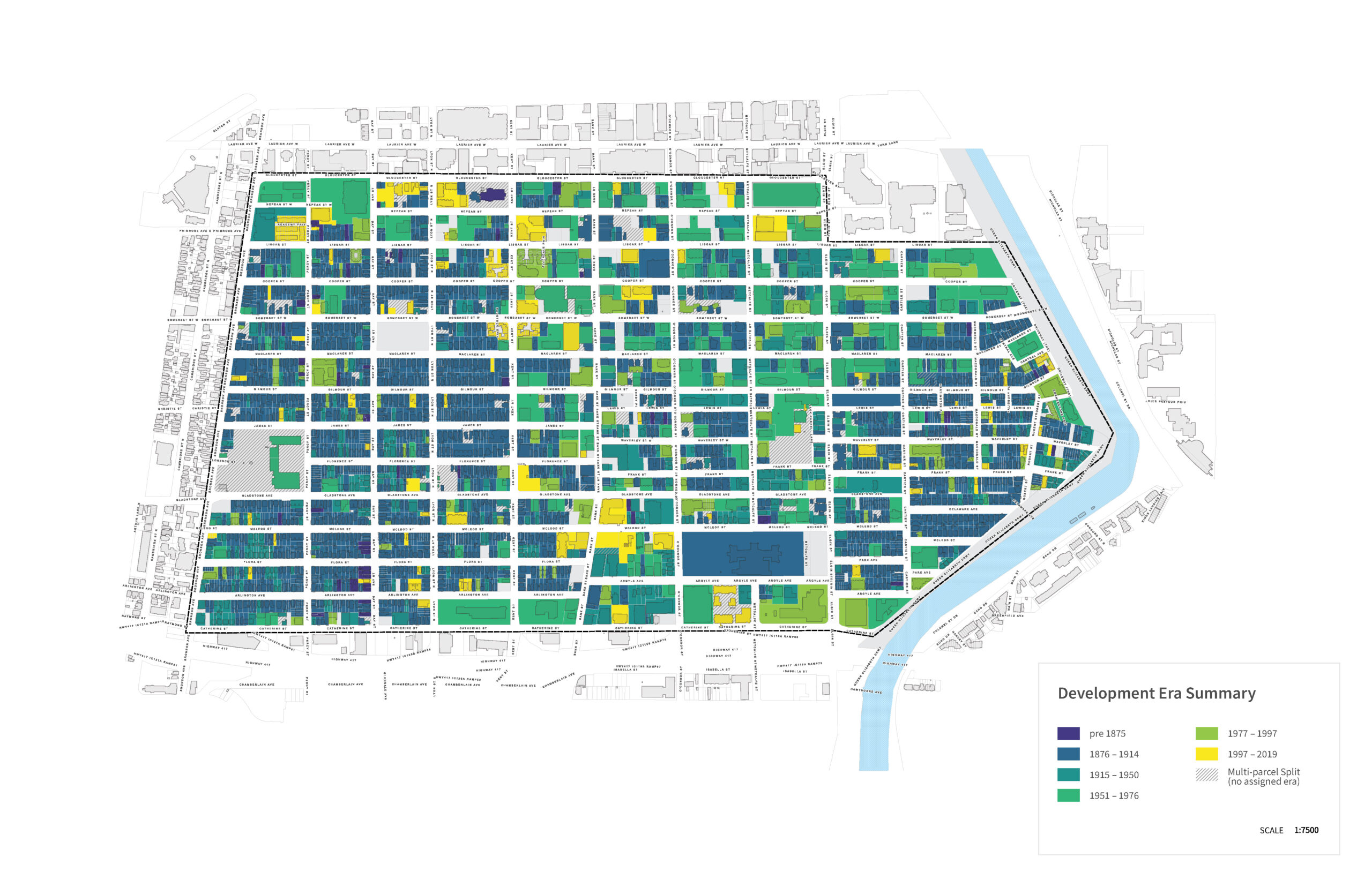 Serving as the first phase of the City of Ottawa’s Centretown Heritage Study, which informed the 2022 Centretown and Minto Park Heritage Conservation District (HCD) Plan, the Inventory provides essential information about cultural heritage resources in a multifunctional database. This data enables the development of conservation goals, strategies, and urban planning policies aligned with community heritage values and objectives.