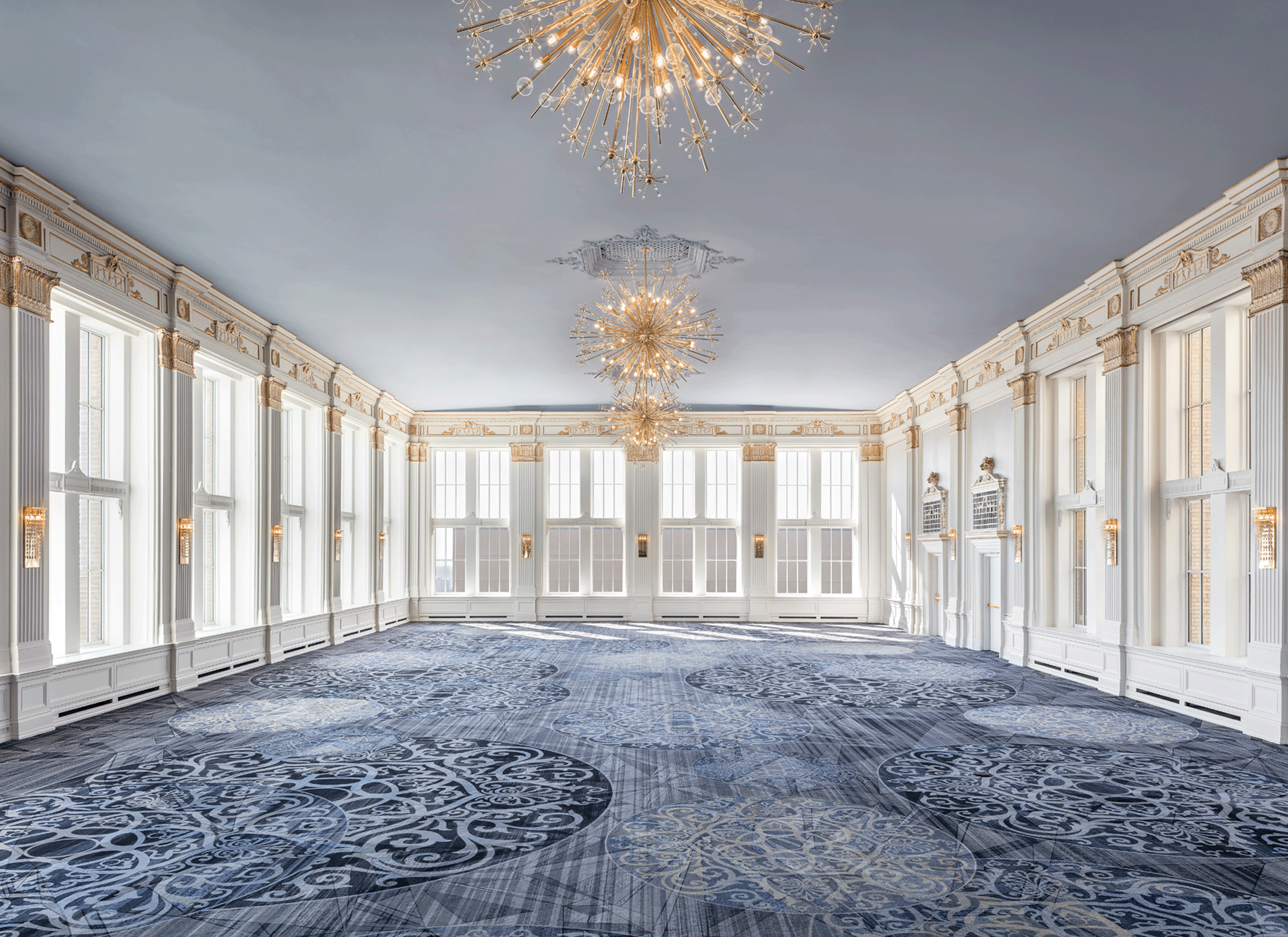 Interior Design work on The Crystal Ballroom was executed by Moncur Design Associates.