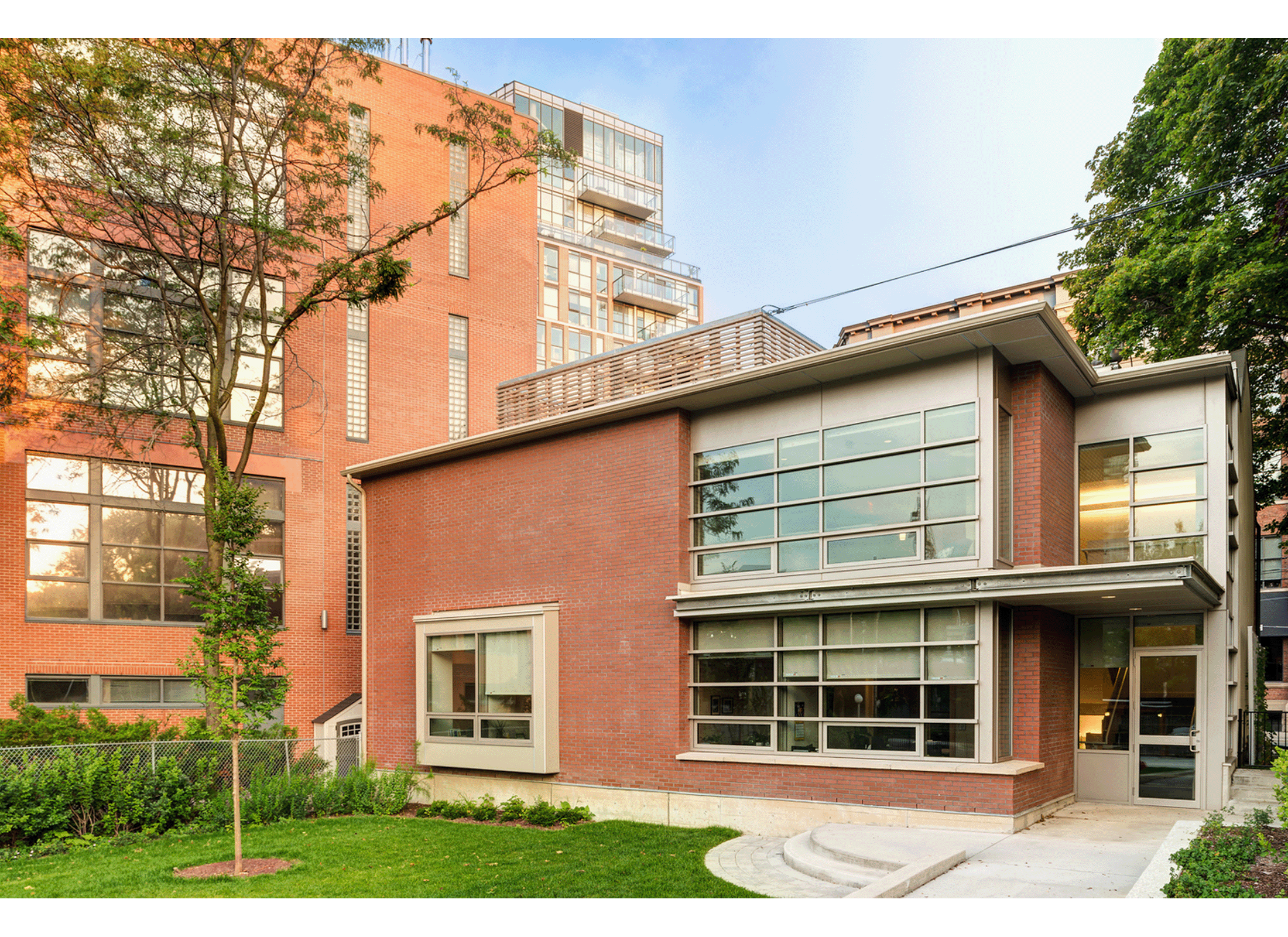 Restoration work included retention in place of the north brick elevation and comprehensive masonry repairs, along with reinstatement of original windows, doorways and wood shopfront details. The renewed Little Trinity Annex building now houses a new administrative centre that offers community services such as meeting spaces, offices, commercial space, a youth lounge and backyard children’s play area.