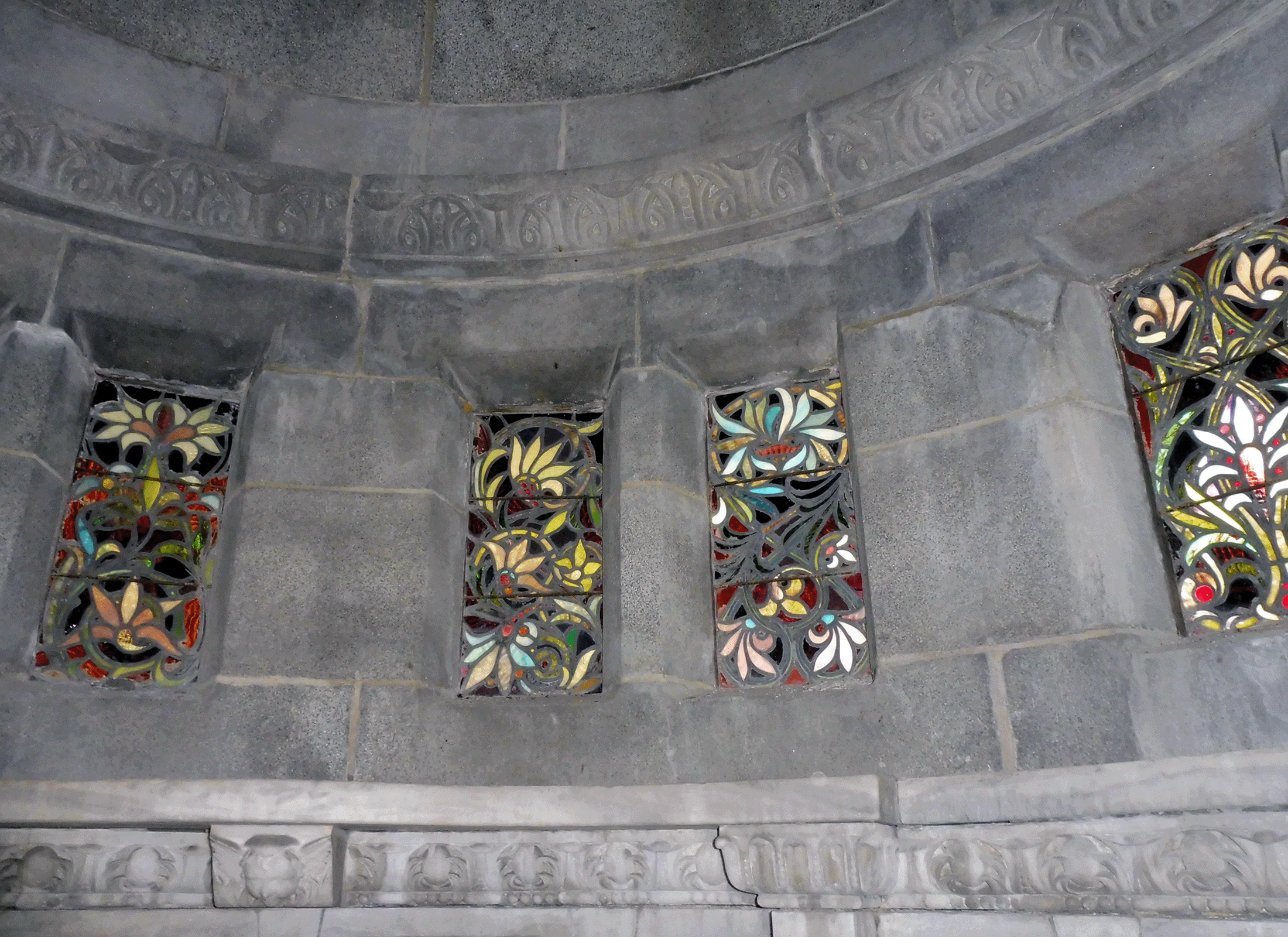 The monument consists of a tower-like structure with a basilica plan and a below-grade crypt, all designed in a Romanesque style.