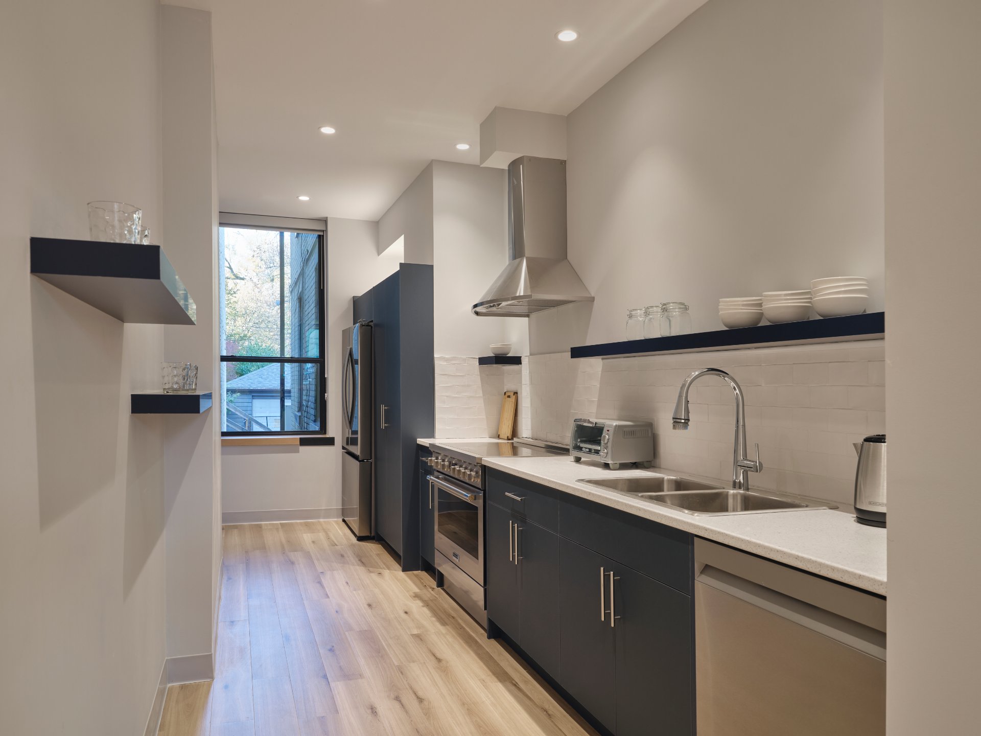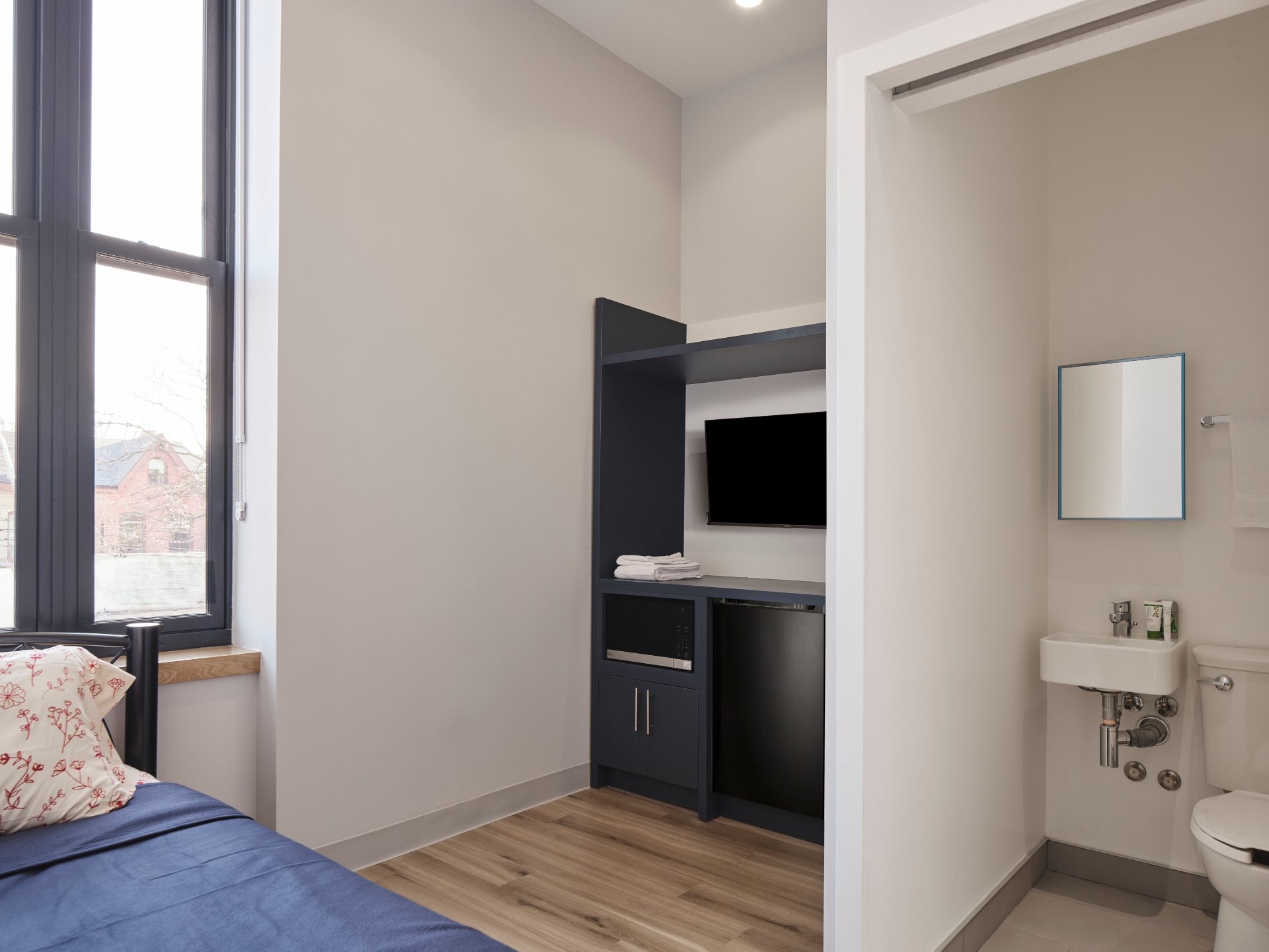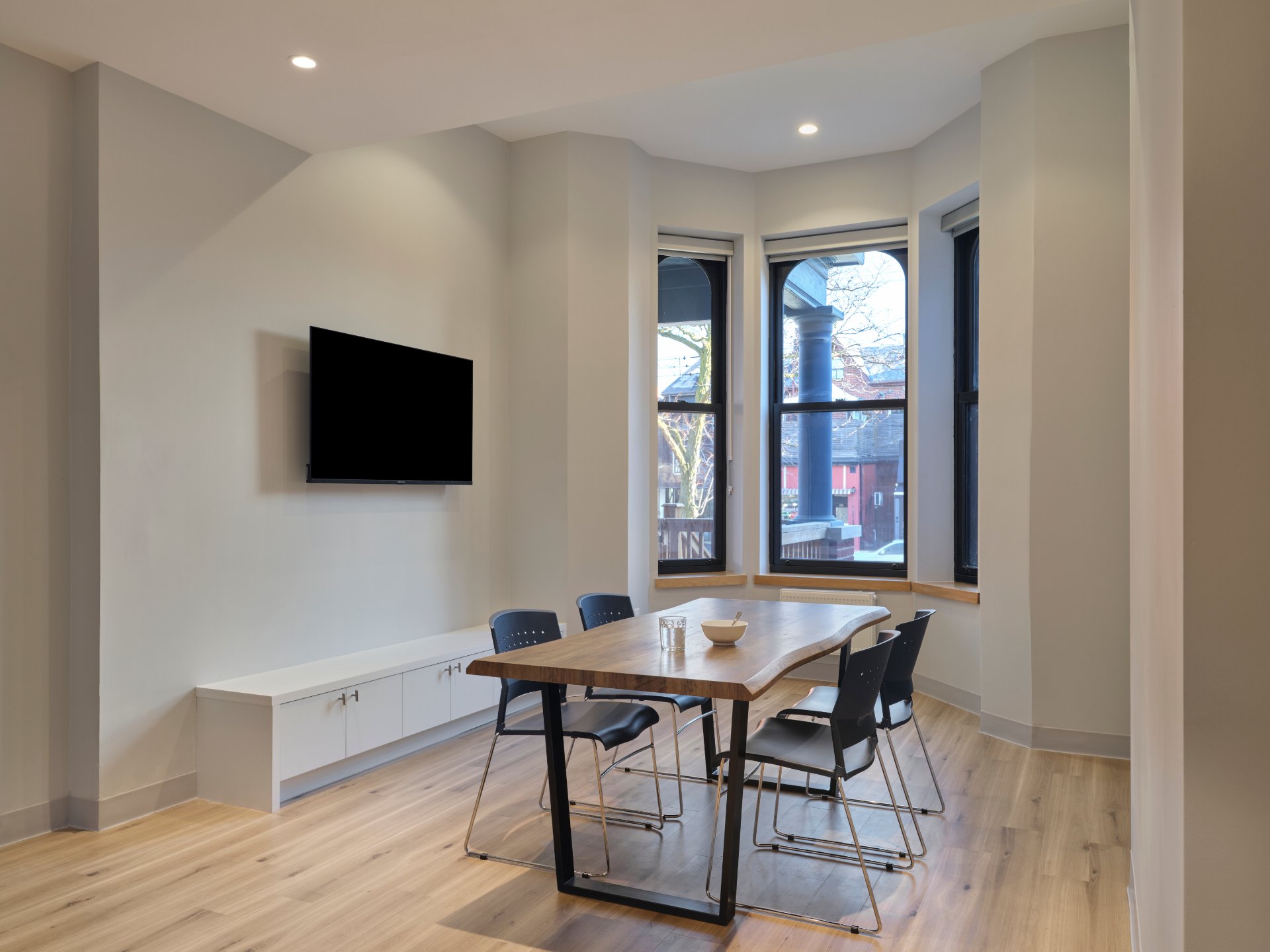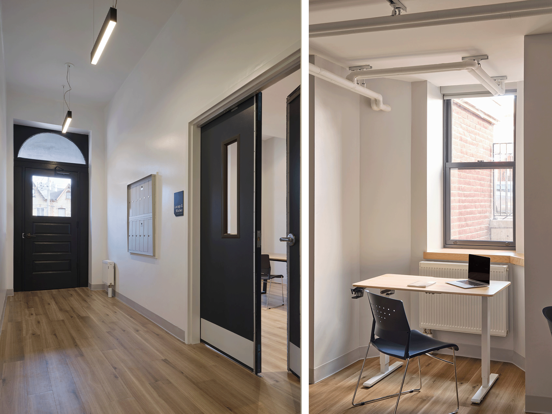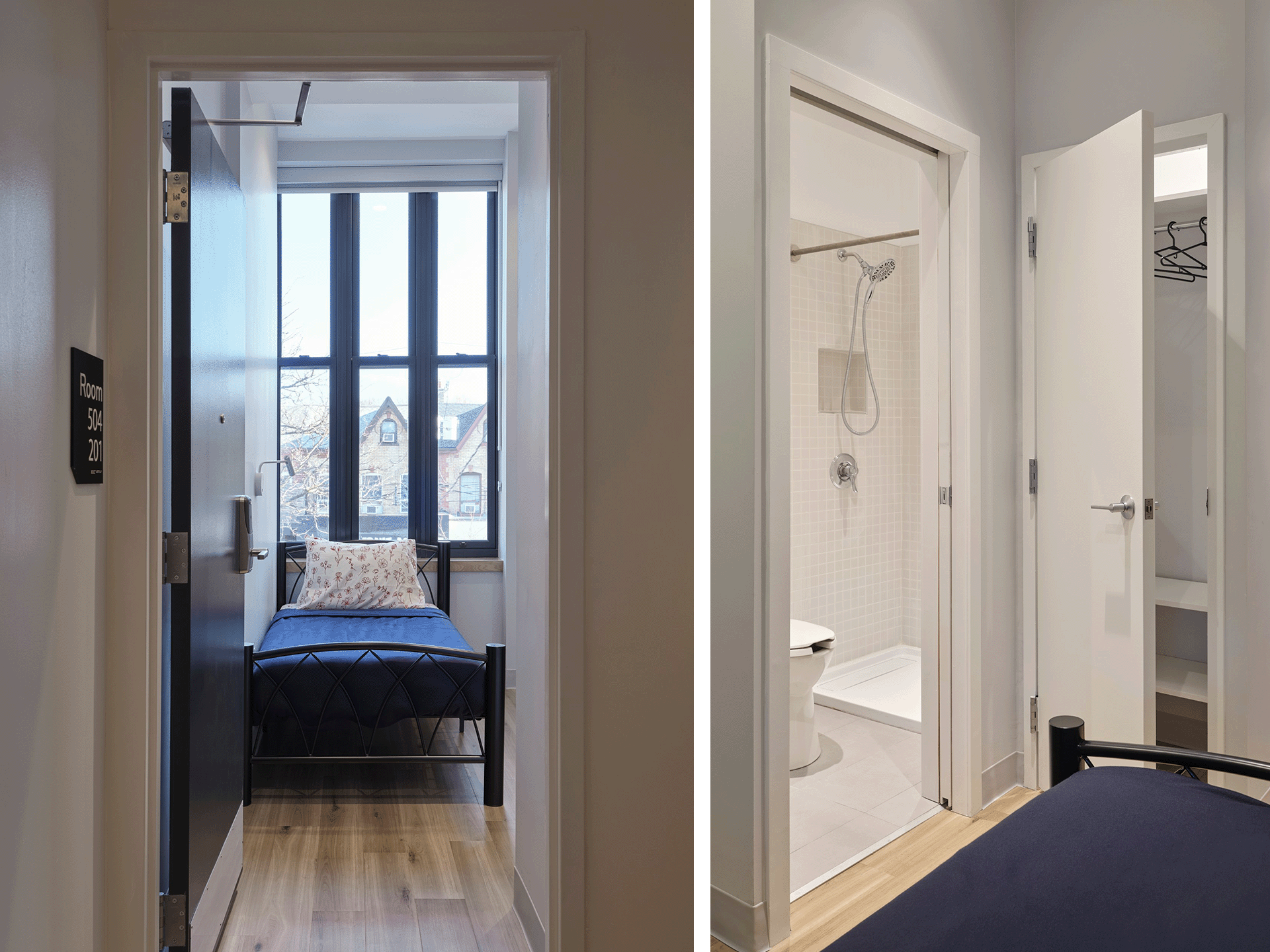 The design celebrates the existing architecture while meeting contemporary needs. Rooms feature large operable windows, ensuite washrooms, and custom furnishings to maximize space and light. Common areas, anchored by kitchens designed for shared or individual meals, foster community and support services, including dedicated staff spaces and counselling rooms. Through thoughtful design and collaboration, this project demonstrates how heritage rehabilitation can deliver inclusive, sustainable housing solutions for Toronto’s most vulnerable residents.