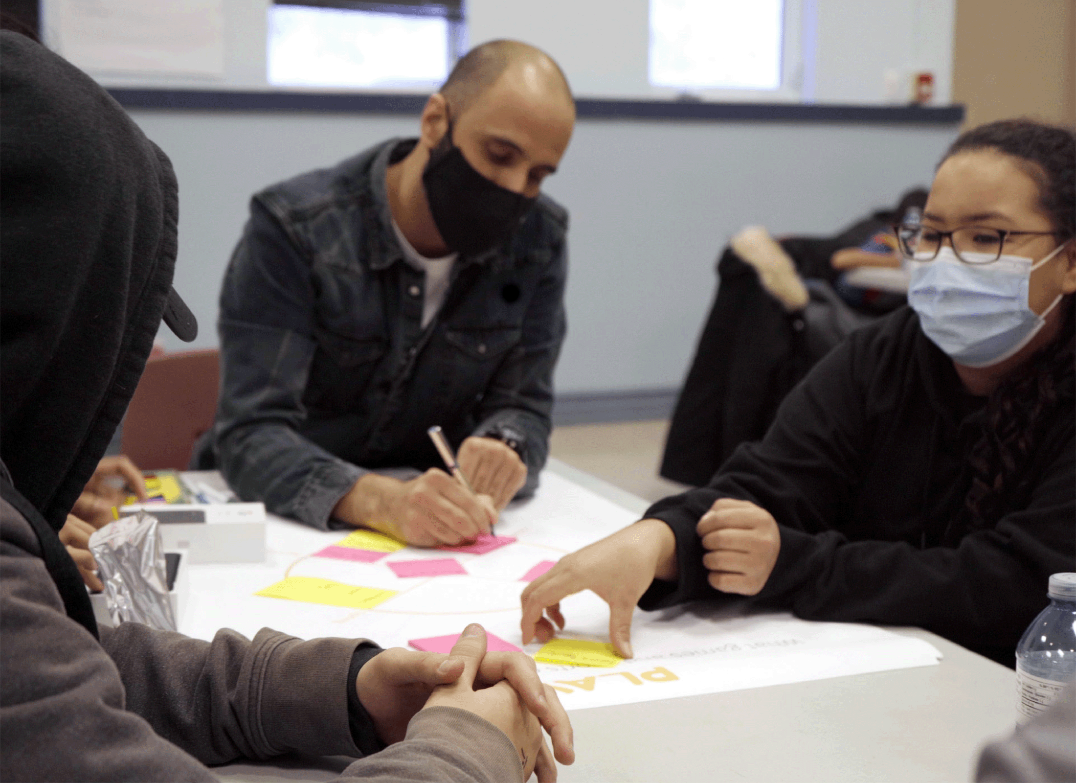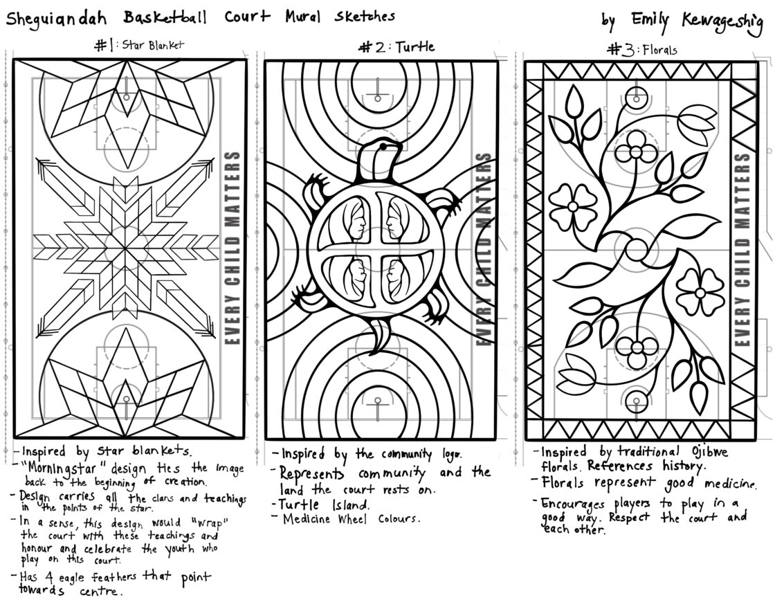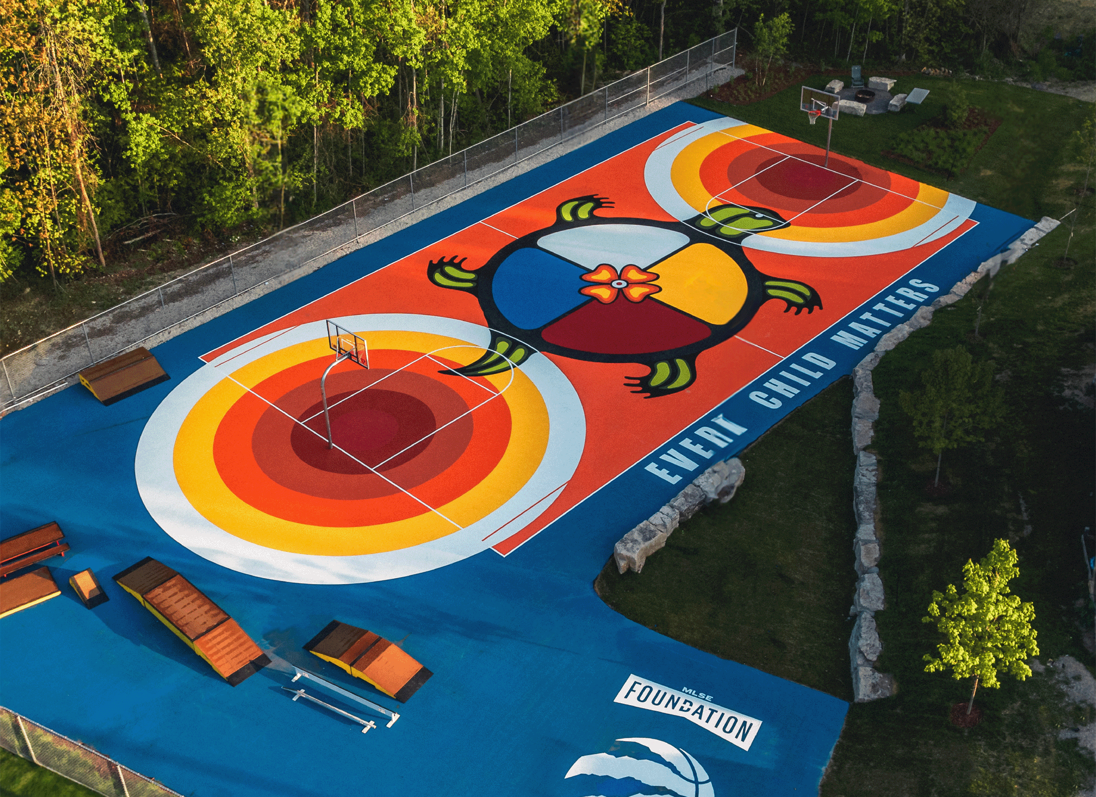 To round out the design team, ERA assisted the community with an RFP process in which Emily Kewageshing was selected by the Youth Leaders to lead the court mural design. Over the course of a year, the design team listened, tested ideas, shared meals, and played basketball in the community. Through a series of in-person and virtual workshops, this unique collaborative design approach made the Youth Leaders the core decision-makers, with the outcome reflecting the values, interests and identity of the community. As co-designers, the Youth Leaders were involved in the process from the early ideation stages through construction. By the time the court opened, the sense of ownership and pride in the youth highlighted where we succeeded together.