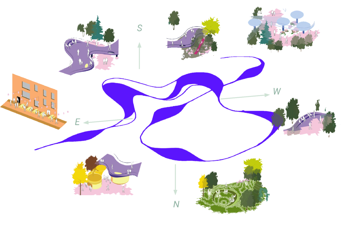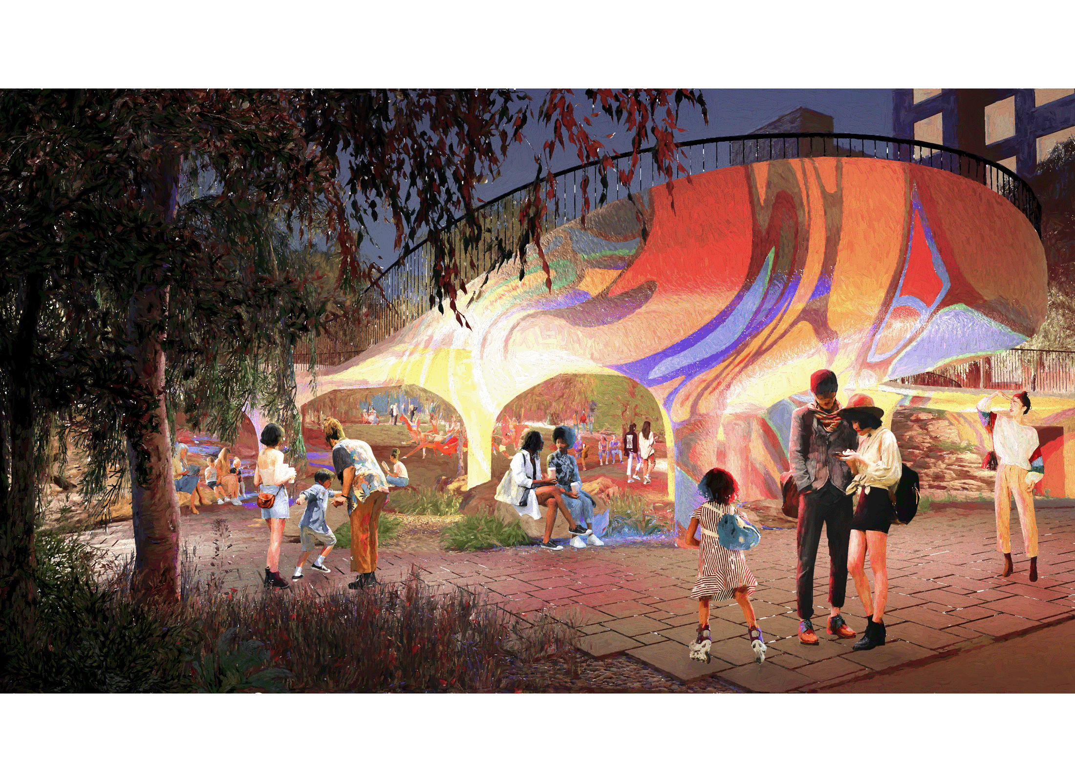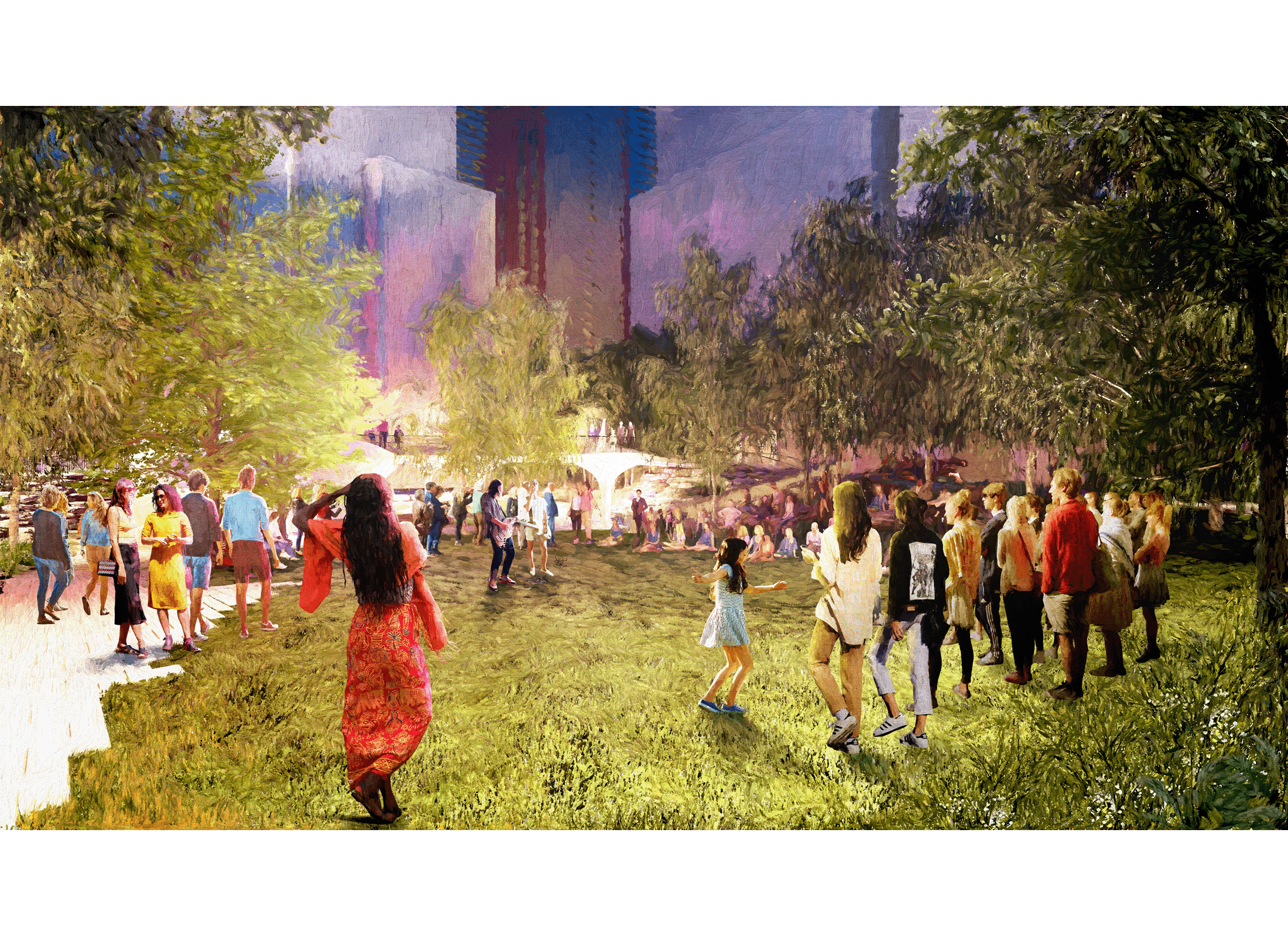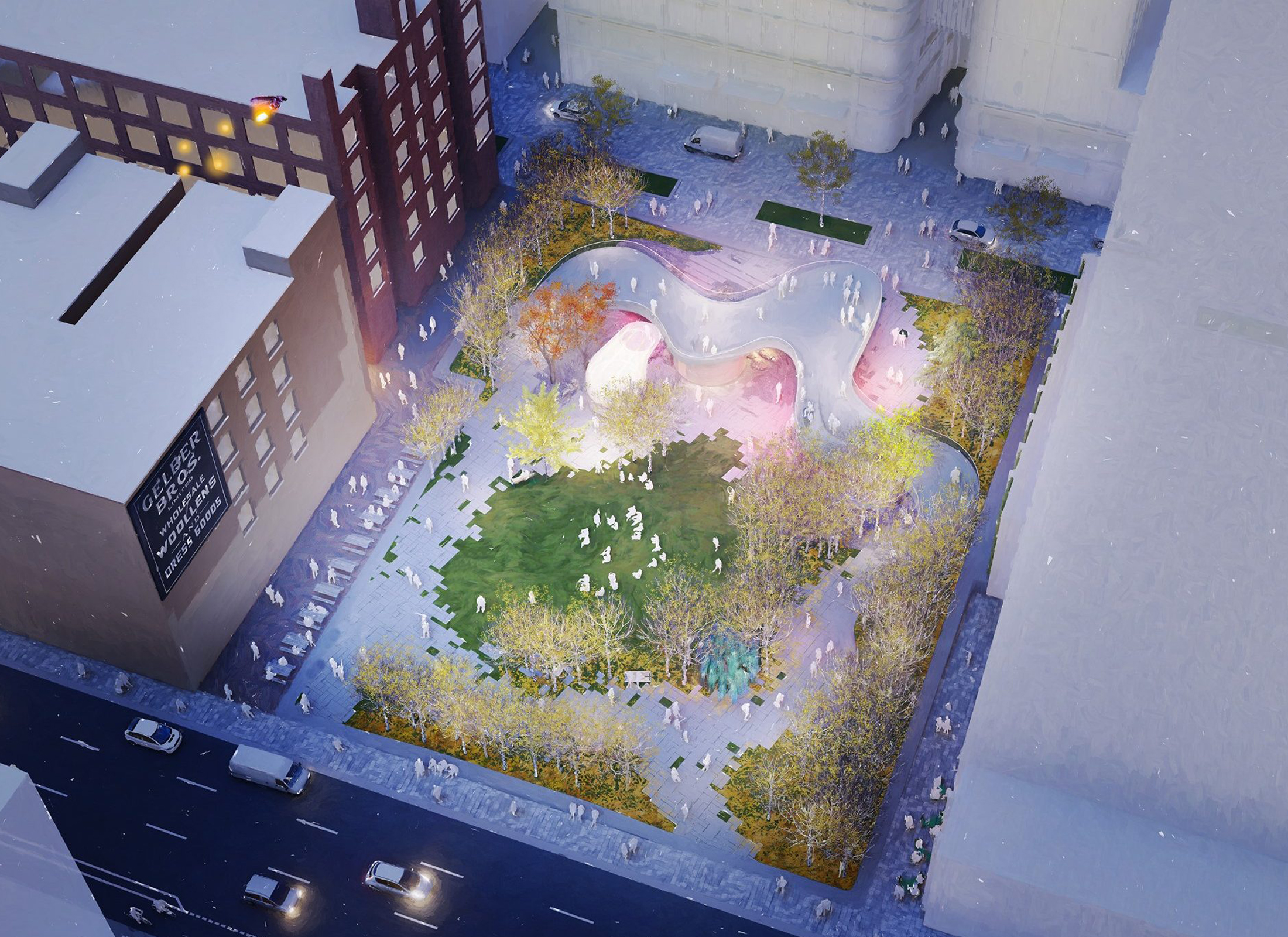 The new park will transform the surface parking lot into a dynamic and inclusive space that celebrates the cycle of life, healing, and the passage of time. The design integrates landscape, light, and performance to create unique visitor experiences. Waawaatesi will serve as a cultural hub, featuring a curated calendar of arts events and installations reflecting traditional myths through contemporary mediums.