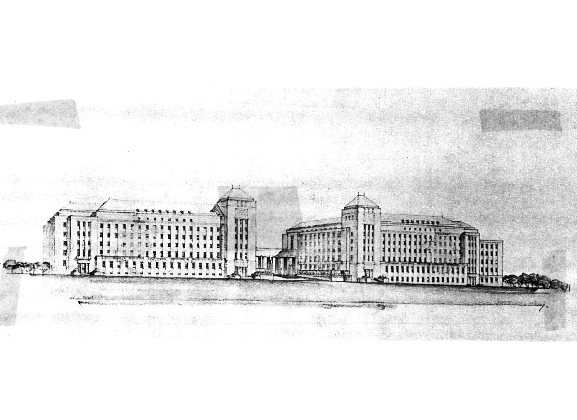 The West Memorial Building (WMB) was constructed from 1954 to 1958, following the construction of its sister building, the East Memorial Building (EMB), which is a mirror image. Together with the EMB and the Memorial Colonnade, which links the two buildings, the West Memorial Building was designated as a Classified Federal Heritage Building in 1992.